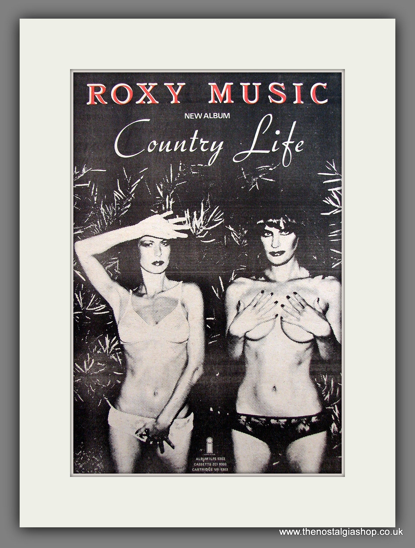 Roxy Music, Country Life. Vintage Advert. This is a large classic Original advert 1974. Presented and Supplied in a cream bevel cut mount with backing card and clear bag. Ready to fit in 20 x 16 inch frame. The mounted advert will be posted via courier and well packed - protected with a sheet of hardboard to keep it rigid. Any questions or inquiries, please get in touch, we are here to help! All our adverts, unless clearly stated are Originals from the date shown. They make excellent pieces of wall art and stunning gifts. Many are rare and hard to find and once sold, may not be replaced. Remember you are buying a piece of history. Website watermark is not on original .