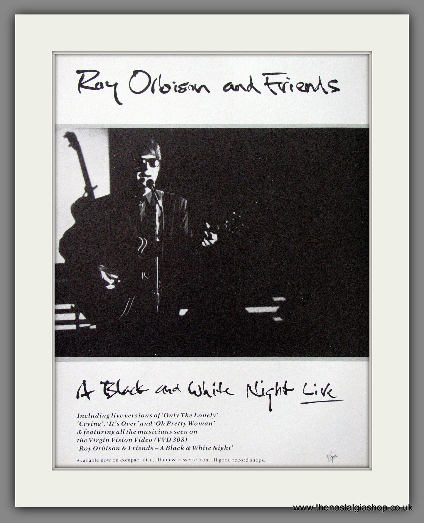 Roy Orbison and Friends. A Black And White Night Live. Classic Original advert 1988. Presented and Supplied in a cream bevel cut mount with backing card and clear bag. Ready to fit in 14 x 11 inch frame. Want it framing? If so, buy this then go to Frames Available Category. Click to buy on the suitable frame and we will do the rest. All our adverts, unless clearly stated are Originals from the date shown. They make excellent pieces of wall art and stunning gifts. Many are rare and hard to find and once sold, may not be replaced. Remember you are buying a piece of history. Website watermark is not on original.
