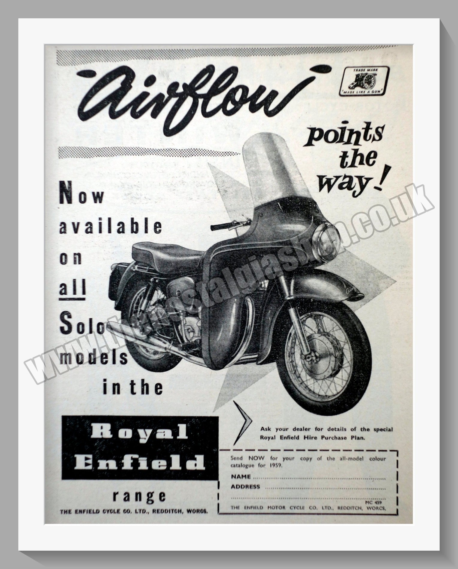 Royal Enfield Airflow Motorcycle. Original Advert 1959 (ref AD57472)