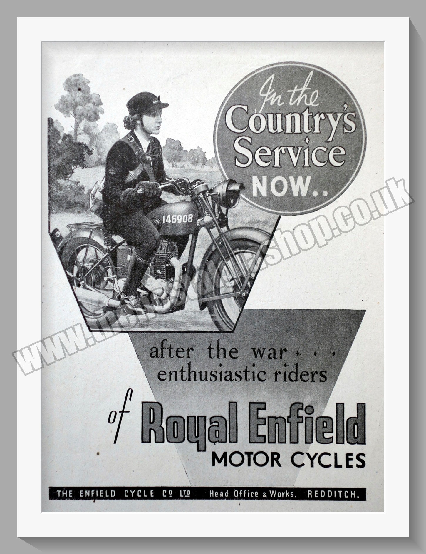 Royal Enfield Motorcycles. In The Country's Service. Original Advert 1943 (ref AD57021)
