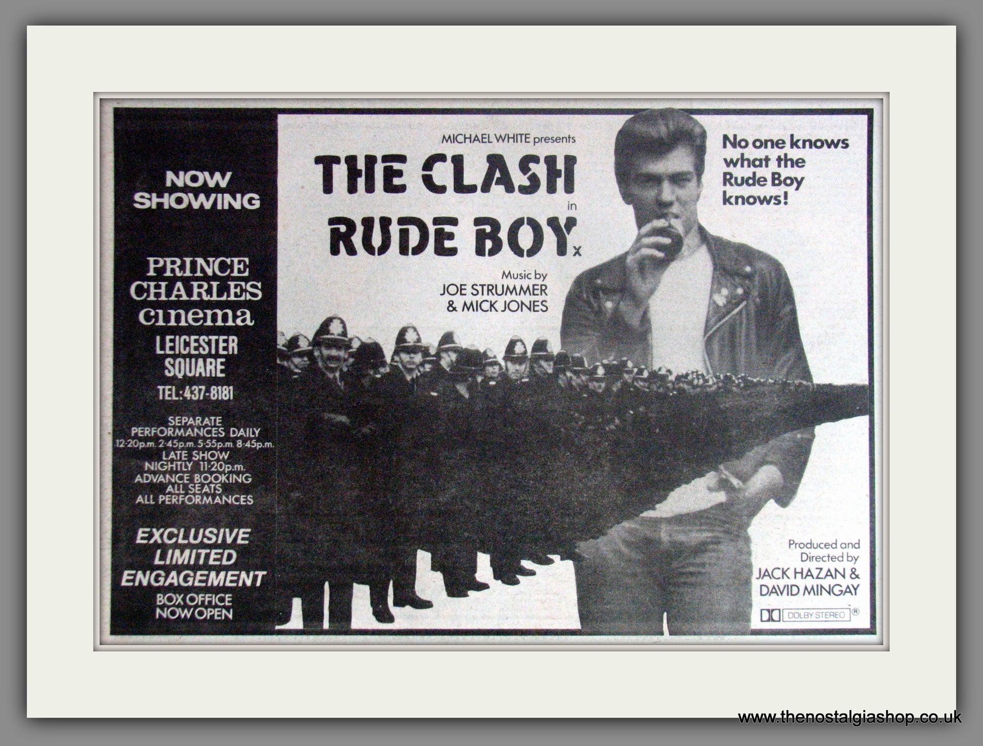 Rude Boy-The Clash. Vintage Original Advert. 1980. Presented in cream bevel cut mount with backing card and clear bag. Ready to fit in 14 x 11 inch frame. Want it framing? If so, buy this then go to Frames Available Category. Click to buy on the suitable frame and we will do the rest. All our adverts, unless clearly stated are Originals from the date shown. They make excellent pieces of wall art and stunning gifts. Many are rare and hard to find and once sold, may not be replaced. Remember you are buying a piece of history. Website watermark is not on original.