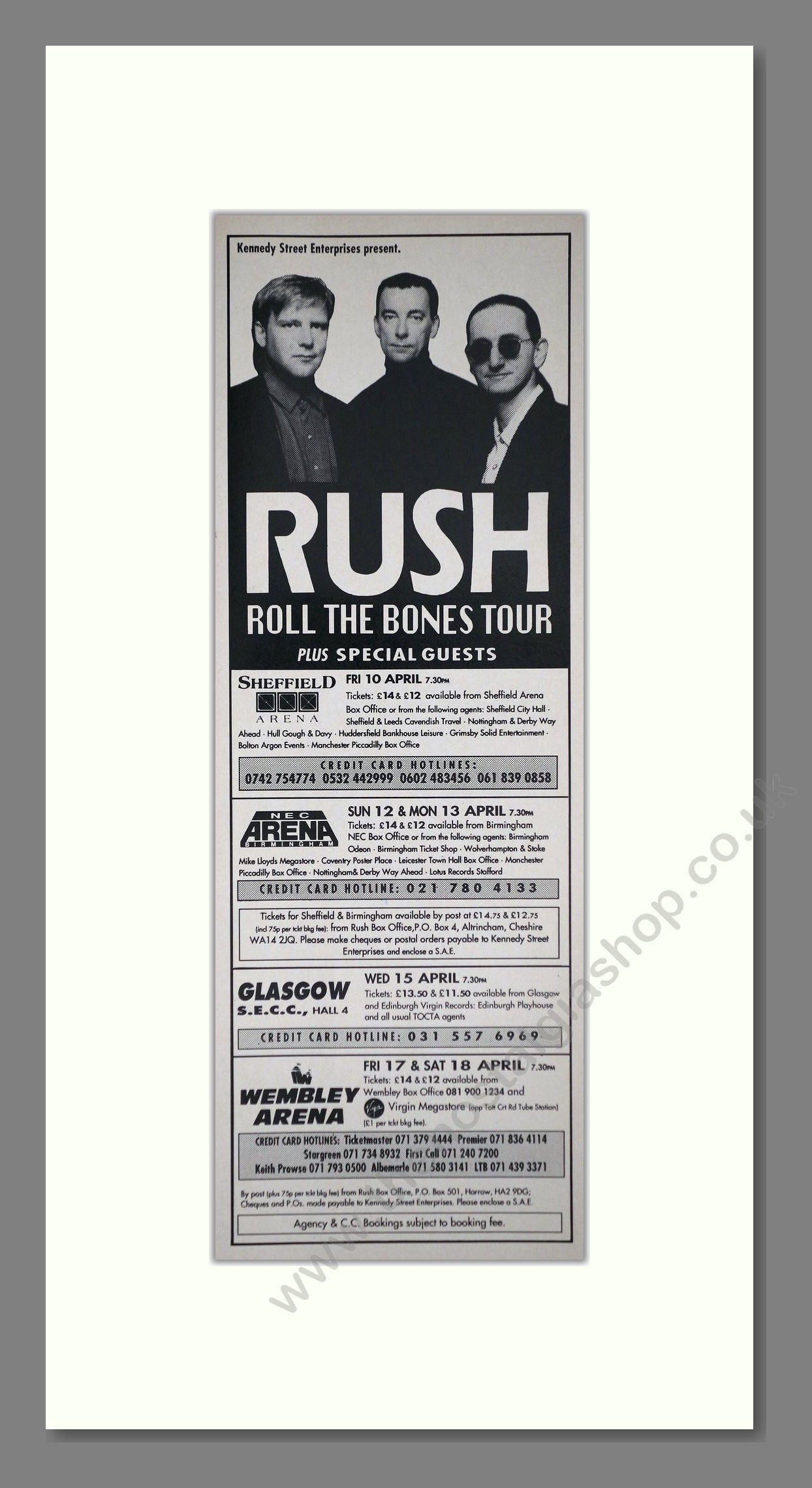 Rush - Roll The Bones Tour. Vintage Advert 1992 (ref AD400134)