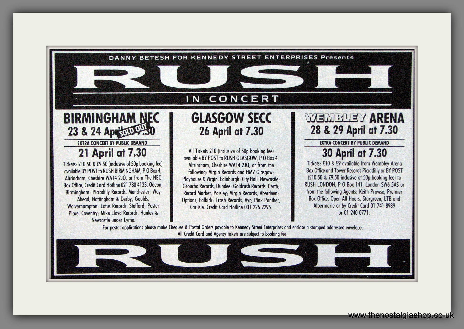 Rush. UK Concerts '88. 1988 Original Advert (ref AD54373)