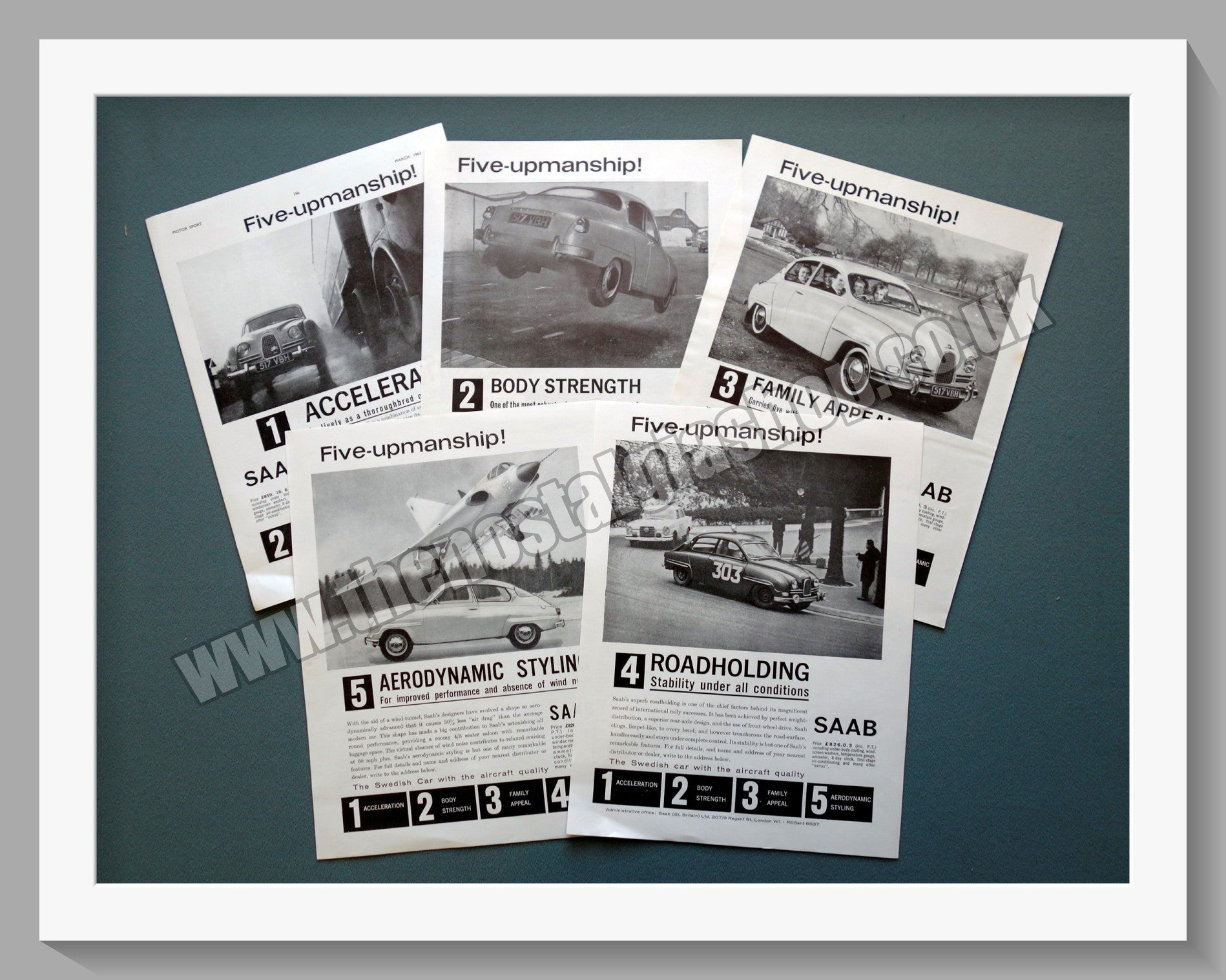 Saab. Five-Upmanship. Full Set of 5 Original Adverts 1962 (ref AD58587)