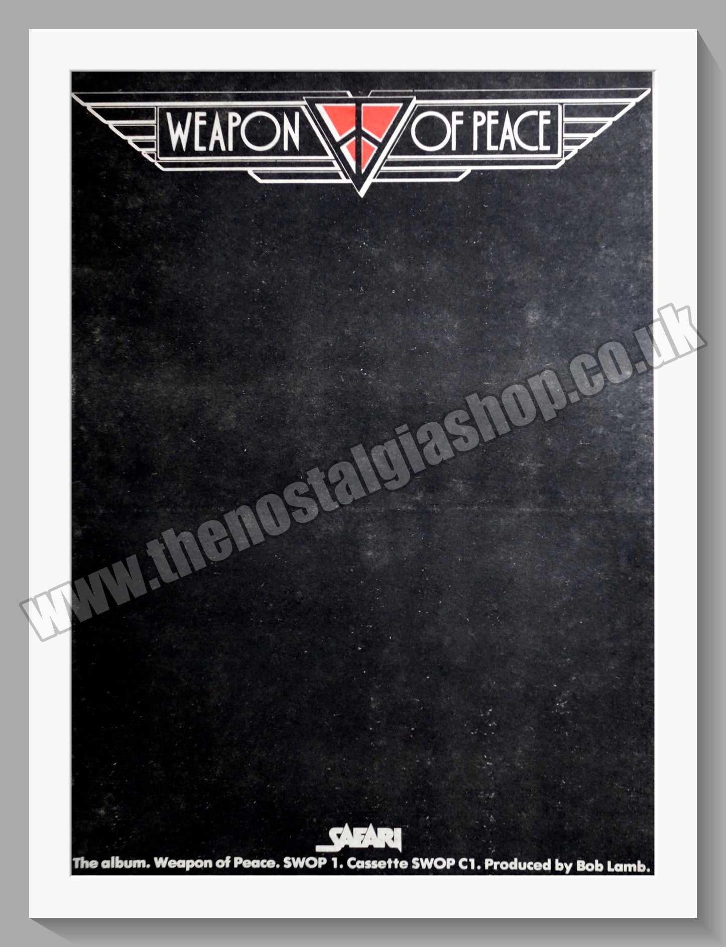 Safari Weapon Of Peace. Large original advert 1981. Presented and Supplied in cream bevel cut mount with backing card and clear bag. Ready to fit in 20 x 16 inch frame. All our adverts, unless clearly stated are Originals from the date shown. They make excellent pieces of wall art and stunning gifts. Many are rare and hard to find and once sold, may not be replaced. Remember you are buying a piece of history. Website watermark is not on original.