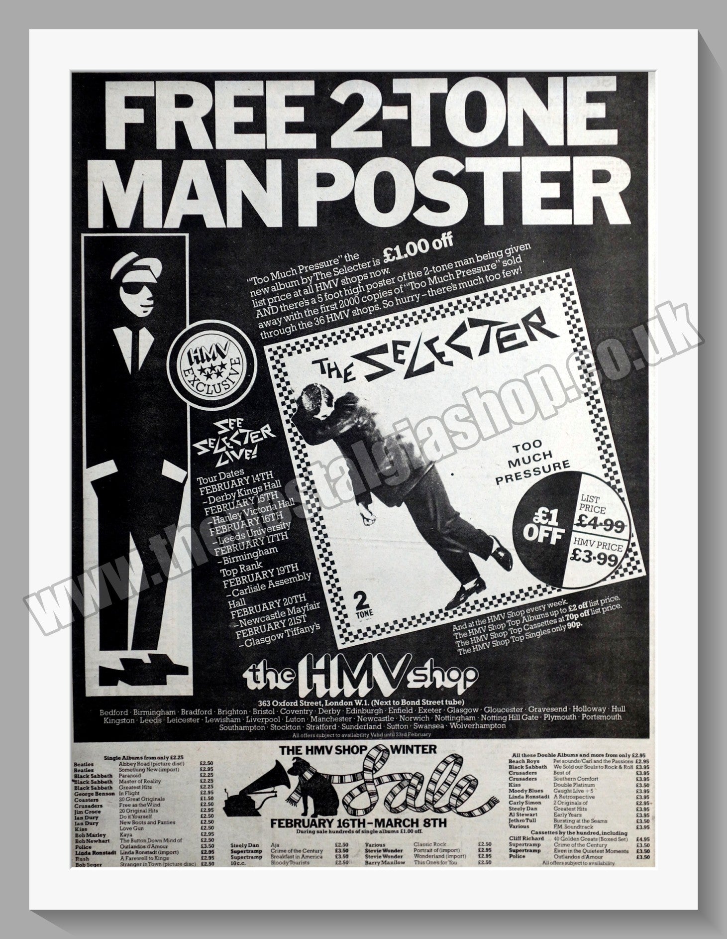 The Selecter Tour Dates. Vintage Advert. This is a large Original advert 1980. Presented and Supplied in a 20 x 16 Inch, cream bevel cut mount with backing card and clear bag. Ready to frame. The mounted advert will be posted via courier and well packed - protected with a sheet of hardboard to keep it rigid. Any questions or inquiries, please get in touch, we are here to help! All our adverts, unless clearly stated are Originals from the date shown. They make excellent pieces of wall art and stunning gifts. Many are rare and hard to find and once sold, may not be replaced. Remember you are buying a piece of history. Website watermark is not on original.