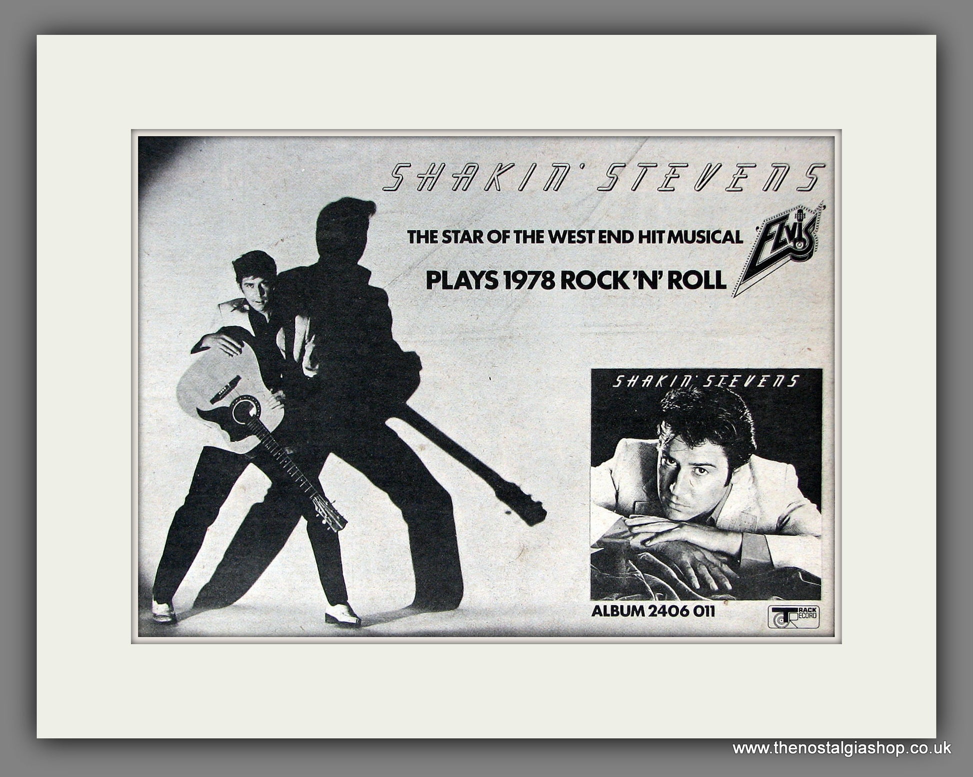 Shakin Stevens Elvis Musical. Classic Original advert 1978. Presented and supplied in a cream bevel cut mount with backing card and clear bag. Ready to fit in 14 x 11 inch frame. The mounted advert will be posted via courier and well packed - protected with a sheet of hardboard to keep it rigid. Any questions or inquiries, please get in touch, we are here to help! All our adverts, unless clearly stated are Originals from the date shown. They make excellent pieces of wall art and stunning gifts. Many are rare and hard to find and once sold, may not be replaced. Remember you are buying a piece of history. Website watermark is not on original.