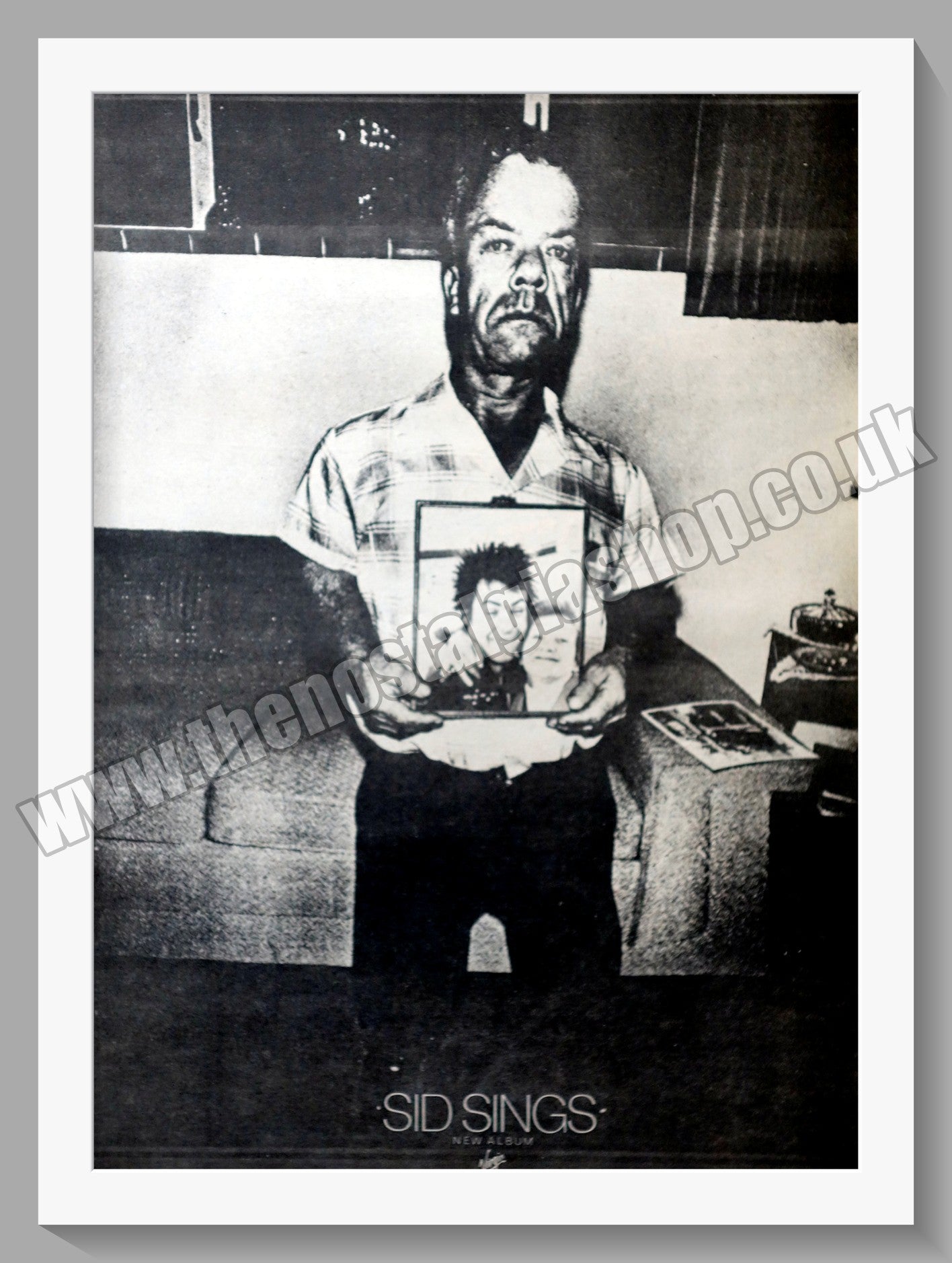 Sid Sings. Vintage Advert. This is a large Original advert 1979. Presented and Supplied in a 20 x 16 Inch, cream bevel cut mount with backing card and clear bag. Ready to frame. The mounted advert will be posted via courier and well packed - protected with a sheet of hardboard to keep it rigid. Any questions or inquiries, please get in touch, we are here to help! All our adverts, unless clearly stated are Originals from the date shown. They make excellent pieces of wall art and stunning gifts. Many are rare and hard to find and once sold, may not be replaced. Remember you are buying a piece of history. Website watermark is not on original.