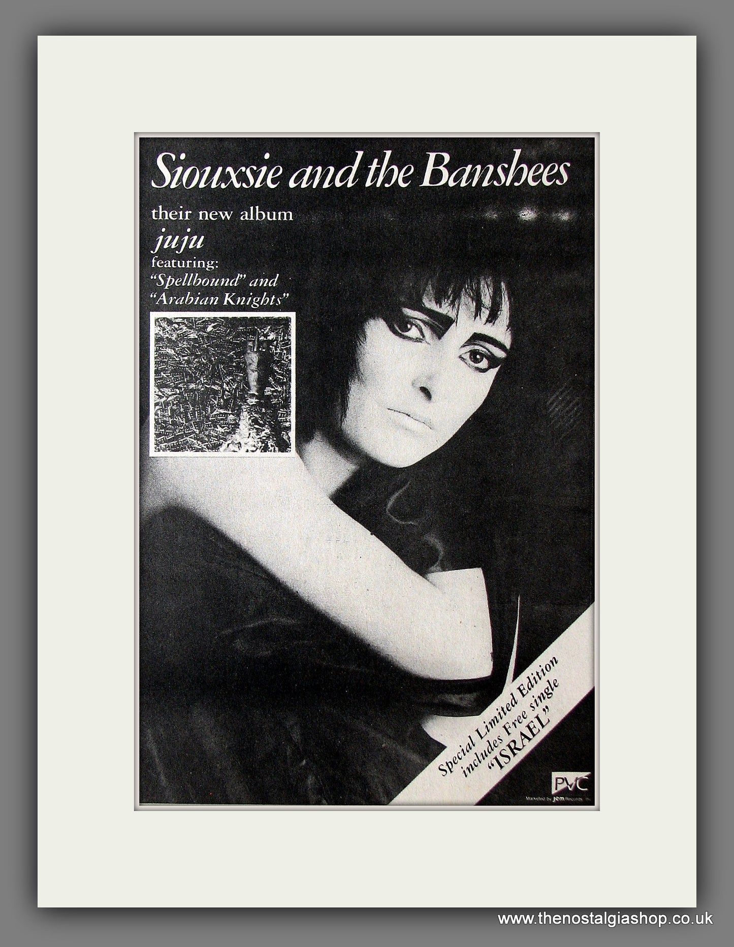 Siouxsie And The Banshees Ju Ju. Classic Original advert 1981. Presented and supplied in a cream bevel cut mount with backing card and clear bag. Ready to fit in 14 x 11 inch frame. The mounted advert will be posted via courier and well packed - protected with a sheet of hardboard to keep it rigid. Any questions or inquiries, please get in touch, we are here to help! All our adverts, unless clearly stated are Originals from the date shown. They make excellent pieces of wall art and stunning gifts. Many are rare and hard to find and once sold, may not be replaced. Remember you are buying a piece of history. Website watermark is not on original.