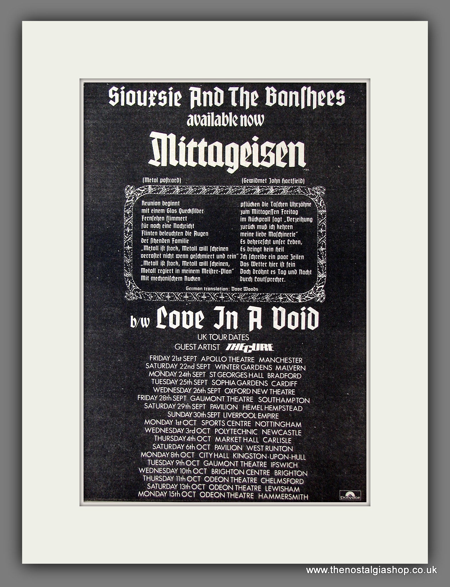 Siouxsie And The Banshees Mittageisen. Original Vintage Advert 1979 (ref AD56372)