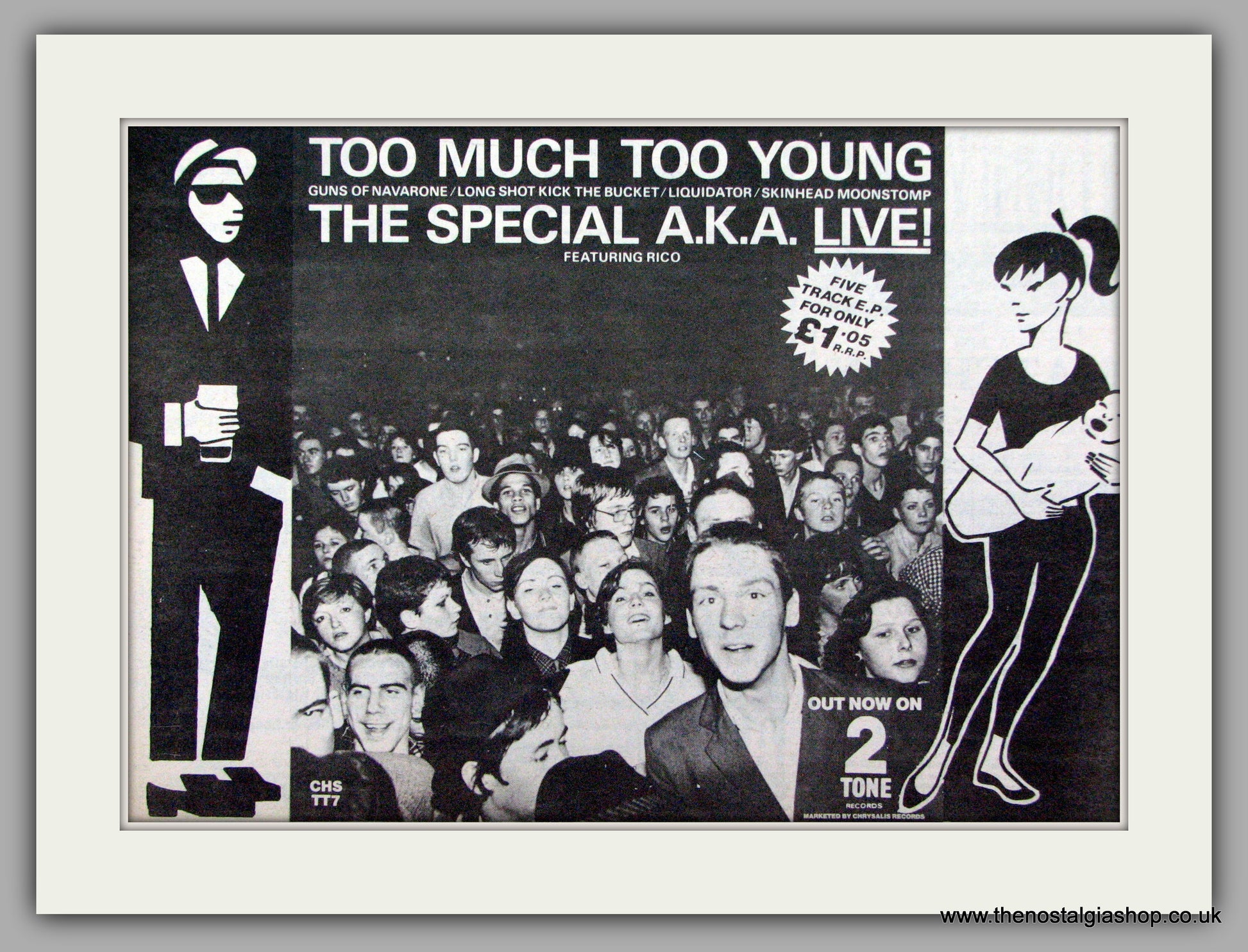 Special A.K.A. Too Much Too Young. Vintage Advert. Classic original advert 1980. Presented in cream bevel cut mount with backing card and display bag. Ready to fit in 14 x 11 inch frame. All our adverts, unless clearly stated are Originals from the date shown. They make excellent pieces of wall art and stunning gifts. Many are rare and hard to find and once sold, may not be replaced. Remember you are buying a piece of history. Website watermark is not on original.
