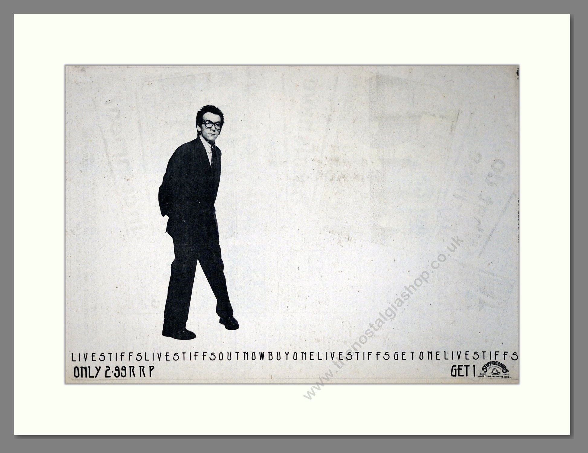 Stiffs - Live. Vintage Advert. This is a large classic original advert from 1978. Presented and supplied in a cream bevel cut mount with backing card and clear bag. Ready to fit in a 20 x 16 inches frame. The mounted advert will be posted via courier and well packed - protected with a sheet of hardboard to keep it rigid. Any questions or enquiries, please get in touch, we are here to help! All our adverts, unless clearly stated are originals from the date shown. They make excellent pieces of wall art and stunning gifts. Many are rare and hard to find and once sold, may not be replaced. Remember you are buying a piece of history. Website watermark is not on original.