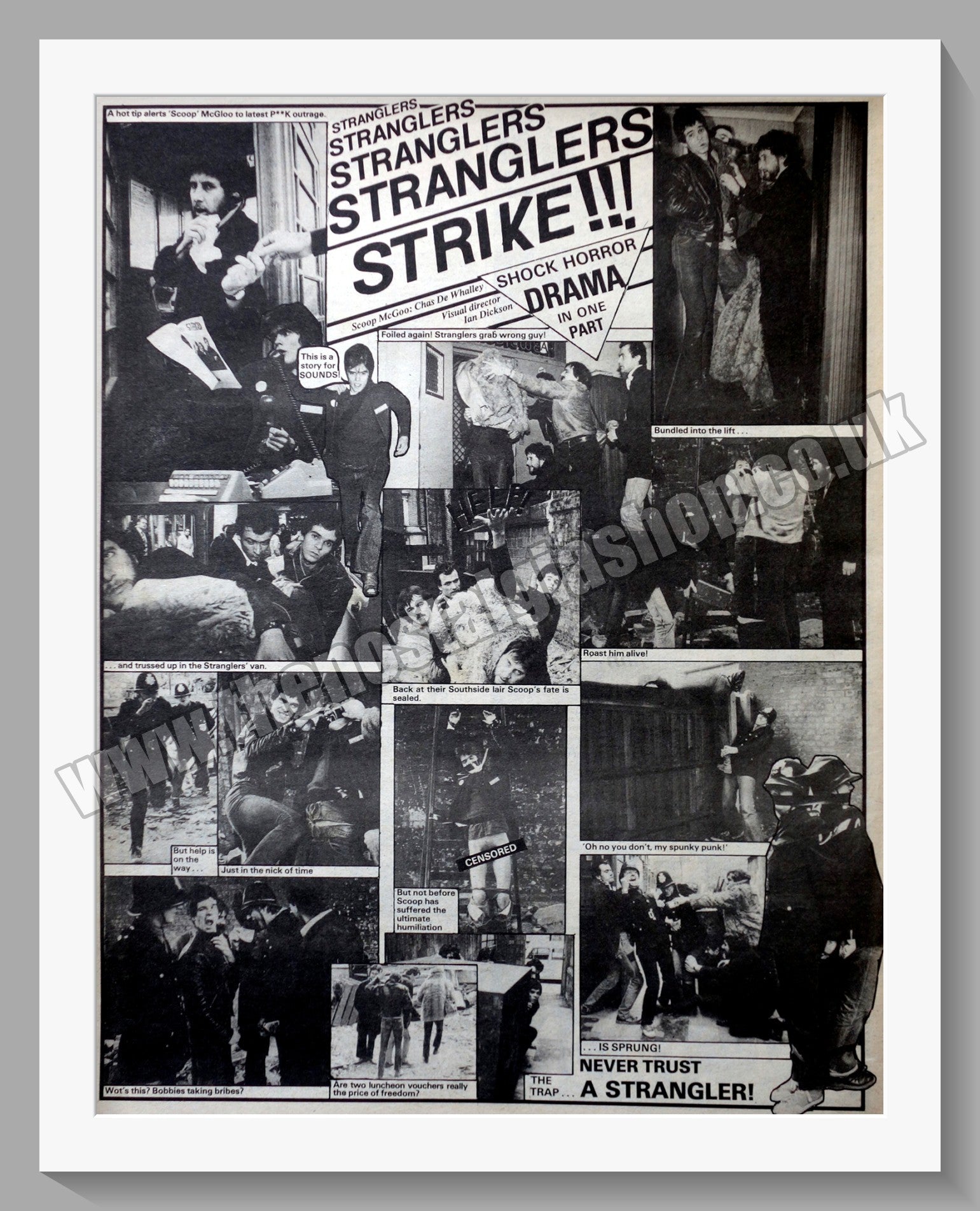 The Stranglers. Strike!!! Vintage Advert. This is a large Original advert 1977. Presented and Supplied in a 20 x 16 Inch, cream bevel cut mount with backing card and clear bag. Ready to frame. The mounted advert will be posted via courier and well packed - protected with a sheet of hardboard to keep it rigid. Any questions or inquiries, please get in touch, we are here to help! All our adverts, unless clearly stated are Originals from the date shown. They make excellent pieces of wall art and stunning gifts. Many are rare and hard to find and once sold, may not be replaced. Remember you are buying a piece of history. Website watermark is not on original.