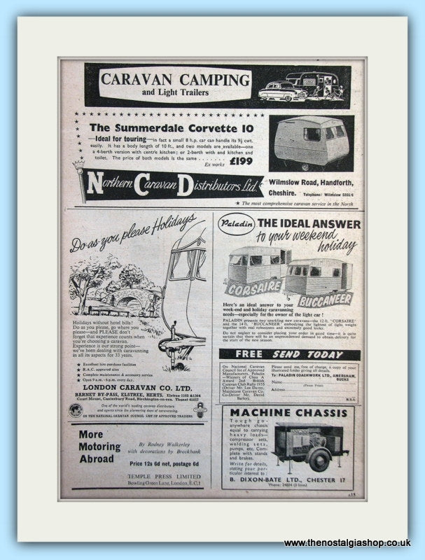 Summerdale Corvette 10, Corsaire & Buccaneer Caravan Original Adverts 1955 (ref AD6335)