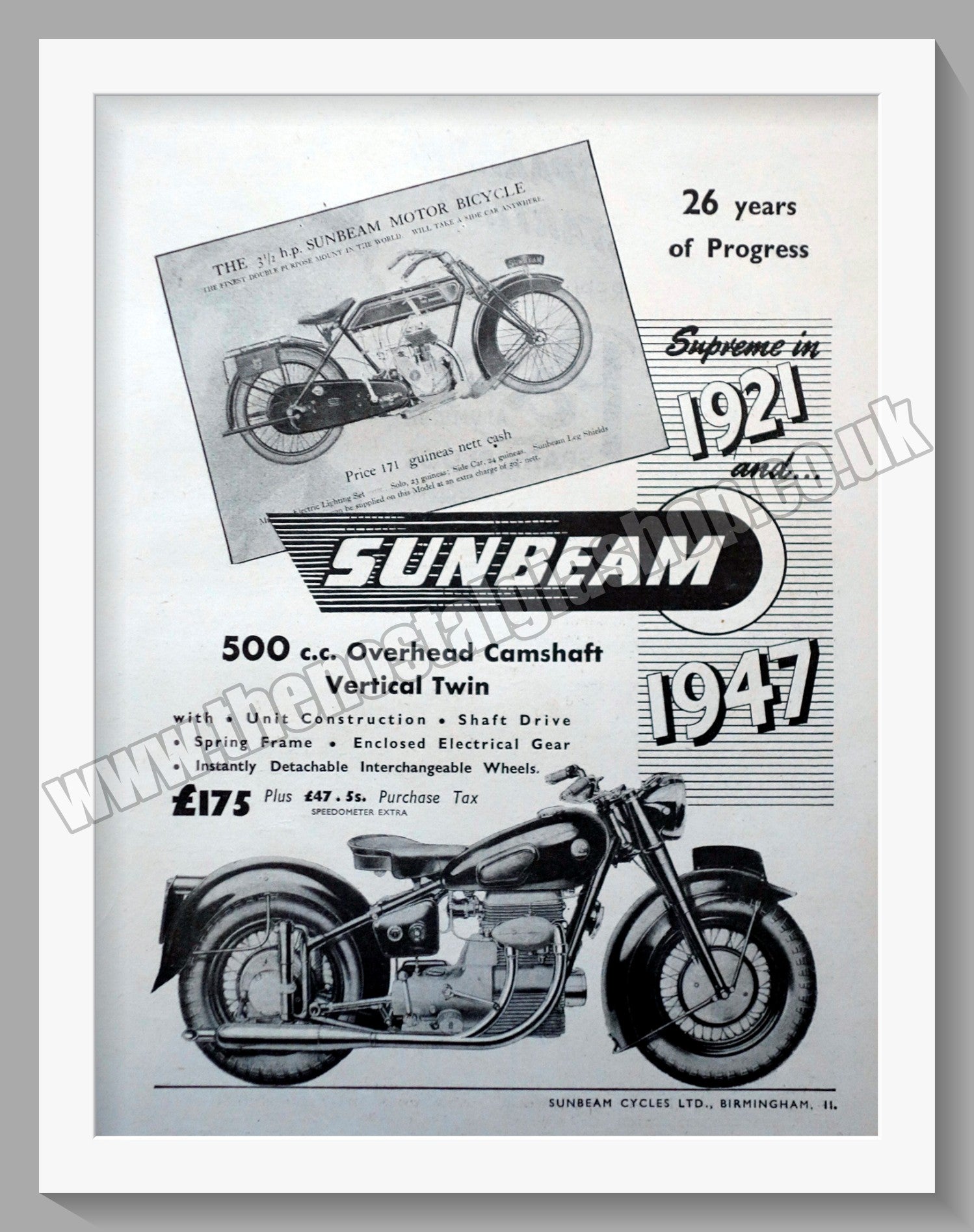Sunbeam Motorcycles. 1947 Original Advert. (ref AD58577)