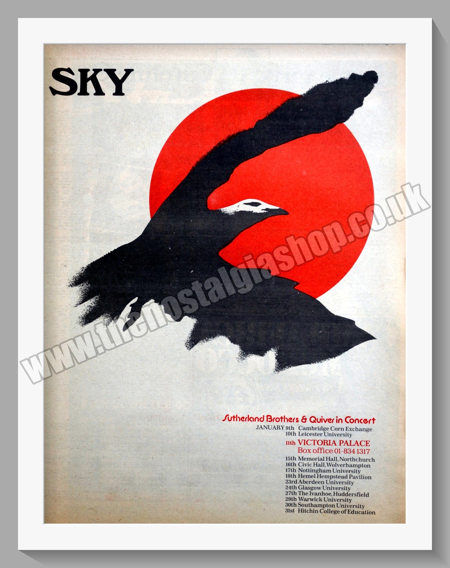 Sutherland Brothers & Quiver In Concert. This Is A Large Classic Original advert 1976. Presented in cream bevel cut mount with backing card and clear bag. Ready to fit in 20 x 16 inch frame. Any questions or enquiries, please get in touch, we are here to help! All our adverts, unless clearly stated are Originals from the date shown. They make excellent pieces of wall art and stunning gifts. Many are rare and hard to find and once sold, may not be replaced. Remember you are buying a piece of history. Website watermark is not on original