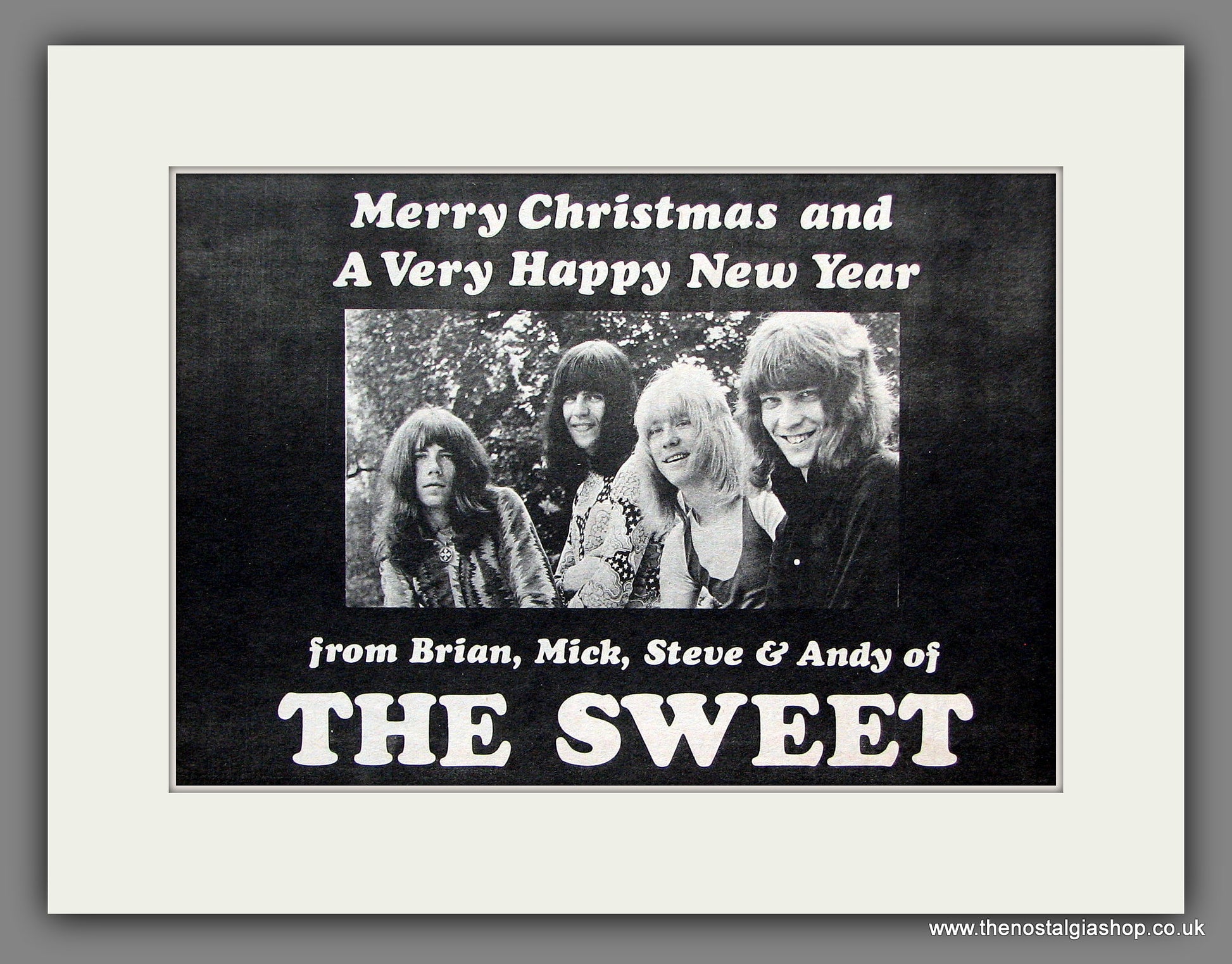 Merry Christmas from Sweet. Classic Original advert 1971. Presented and supplied in a cream bevel cut mount with backing card and clear bag. Ready to fit in 14 x 11 inch frame. The mounted advert will be posted via courier and well packed - protected with a sheet of hardboard to keep it rigid. Any questions or inquiries, please get in touch, we are here to help! All our adverts, unless clearly stated are Originals from the date shown. They make excellent pieces of wall art and stunning gifts. Many are rare and hard to find and once sold, may not be replaced. Remember you are buying a piece of history. Website watermark is not on original.