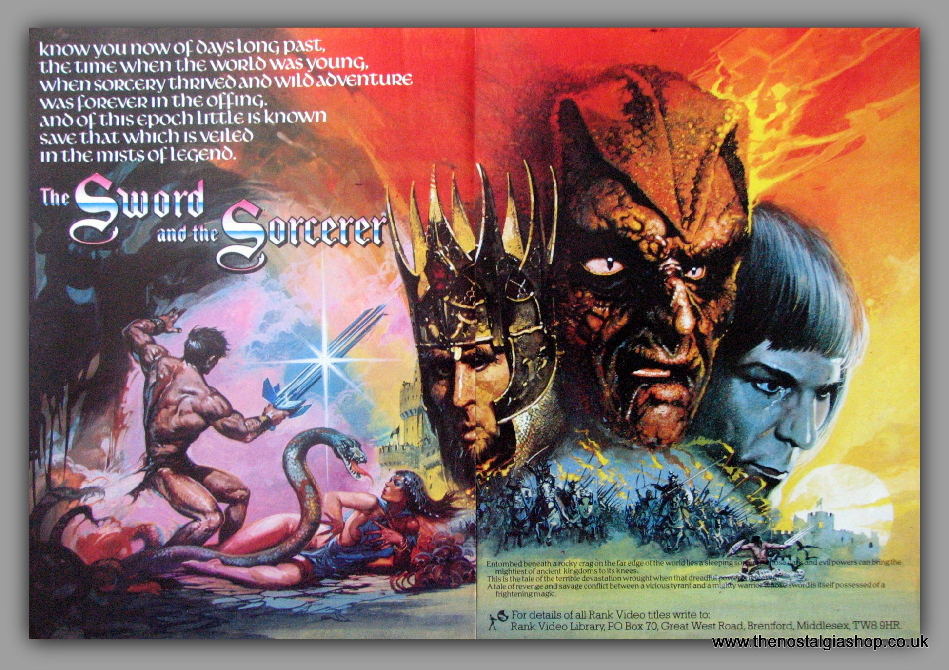 The Sword And The Sorcerer-Know you now of days long past. Classic Original advert 1983. This is A3 size in two halves, and is sold unmounted .All our adverts, unless clearly stated are Originals from the date shown. They make excellent pieces of wall art and stunning gifts. Many are rare and hard to find and once sold, may not be replaced. Remember you are buying a piece of history. Website watermark is not on original.