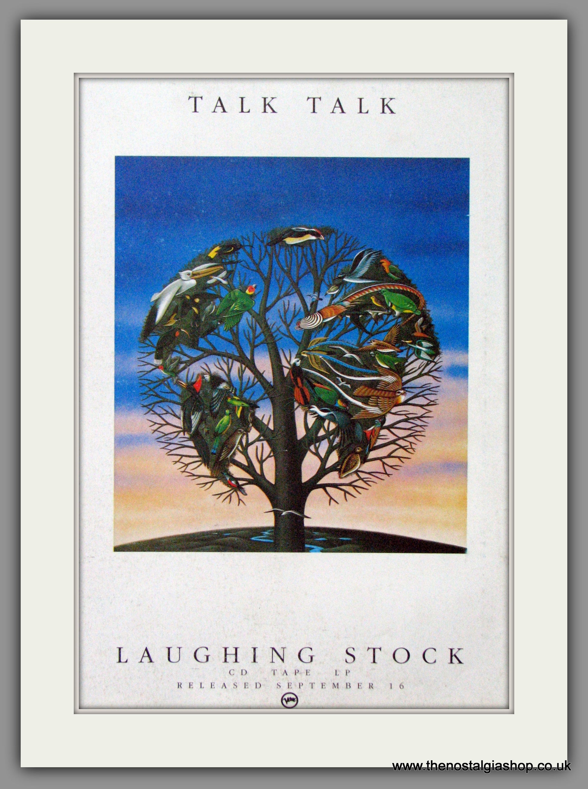 Talk Talk. Laughing Stock. Vintage Advert. Classic Original advert 1991. Presented in cream bevel cut mount, size 14 x 11 inches with backing card and clear bag. Ready to frame. Want it framing? If so, buy this then go to Frames Available Category. Click to buy on the suitable frame and we will do the rest. All our adverts, unless clearly stated are Originals from the date shown They make excellent pieces of wall art and stunning gifts. Many are rare and hard to find and once sold, may not be replaced. Remember you are buying a piece of history. Website watermark is not on original.