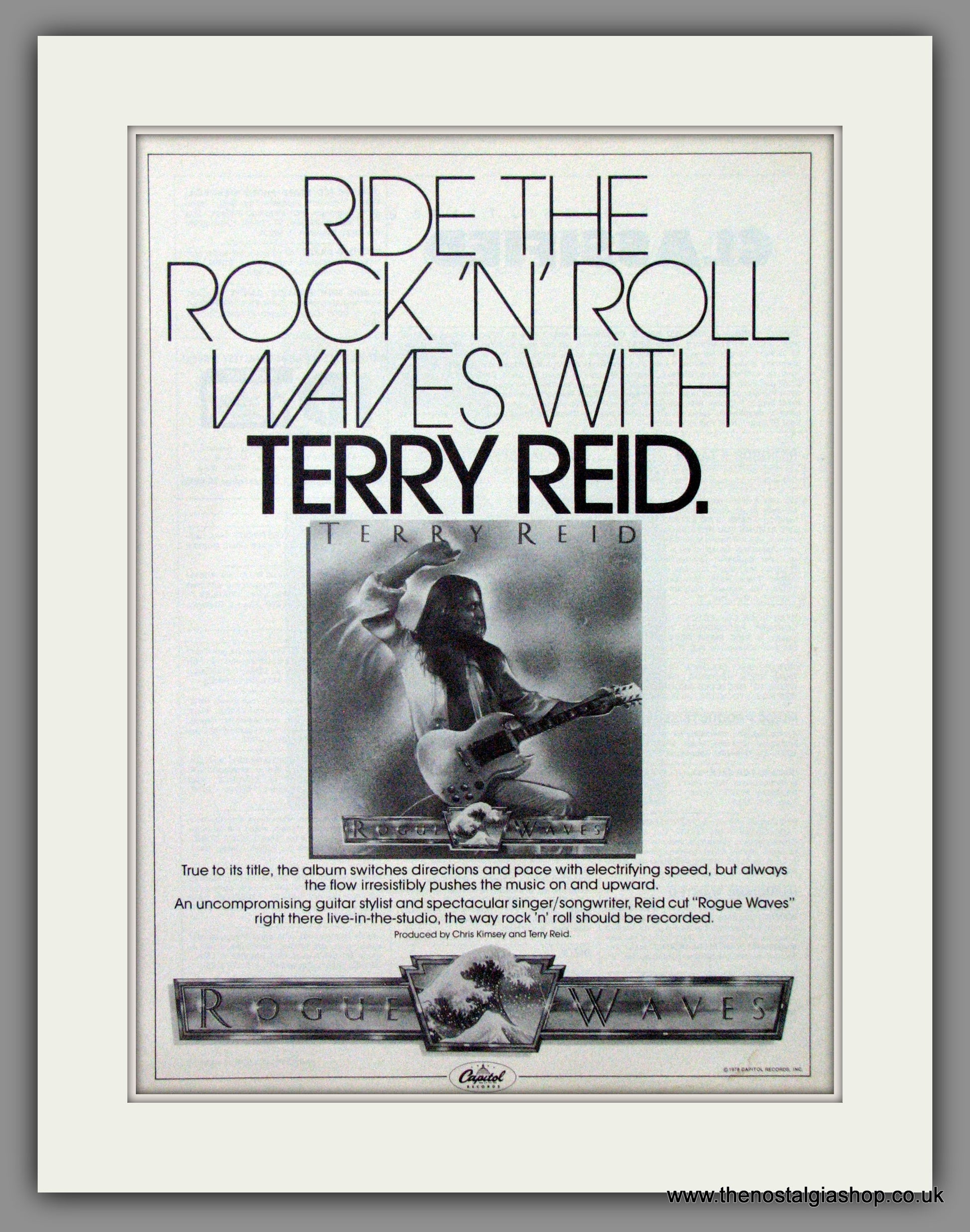 Terry Reid, Rogue Waves. Classic original advert 1979. Presented and Supplied in cream bevel cut mount with backing card and clear bag. Ready to fit in 14 x 11 inch frame. Want it framing? If so, buy this then go to Frames Available Category. Click to buy on the suitable frame and we will do the rest. All our adverts, unless clearly stated are Originals from the date shown. They make excellent pieces of wall art and stunning gifts. Many are rare and hard to find and once sold, may not be replaced. Remember you are buying a piece of history. Website watermark is not on original.