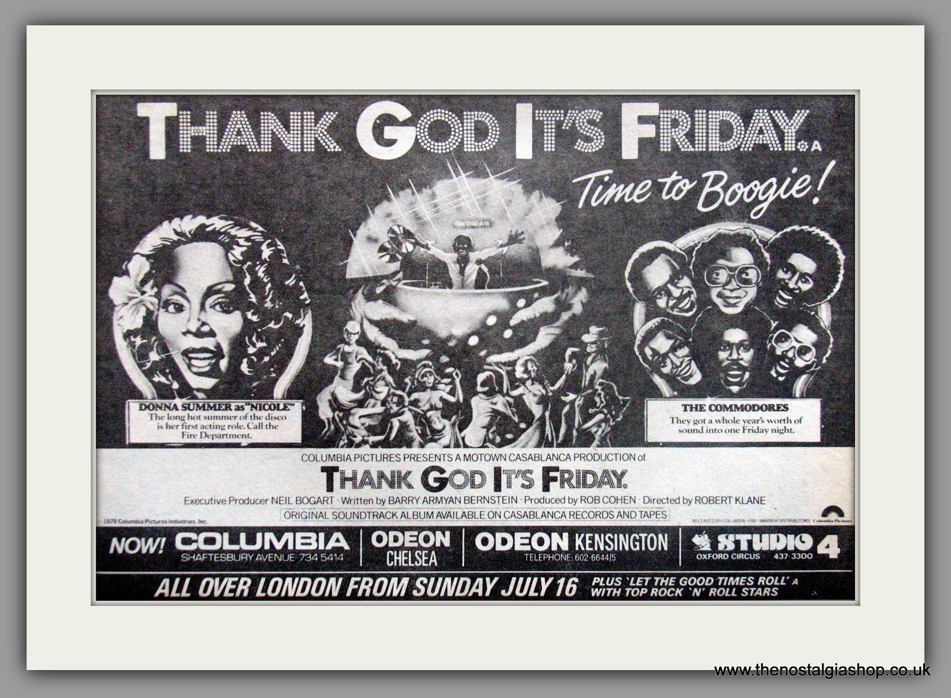 Thank God It's Friday-Donna Summer, The Commodores. Classic original advert 1978. Presented in cream bevel cut mount with backing card and clear bag. Ready to fit in 14 x 11 inch frame. Want it framing? If so, buy this then go to Frames Available Category. Click to buy on the suitable frame and we will do the rest. All our adverts, unless clearly stated are Originals from the date shown. They make excellent pieces of wall art and stunning gifts. Many are rare and hard to find and once sold, may not be replaced. Remember you are buying a piece of history. Website watermark is not on original.