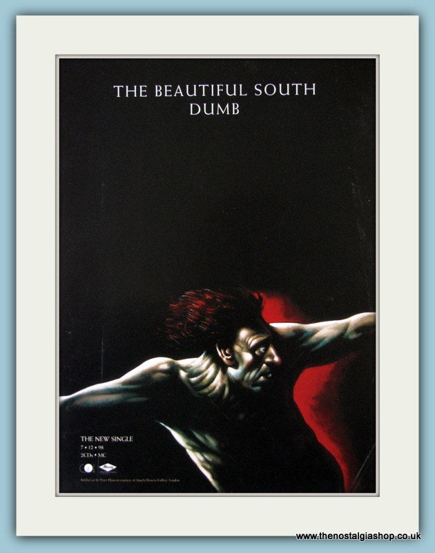 The Beautiful South. Dumb and Quench adverts. 2 x Classic original adverts 1998 & 1999. (price is for both adverts) Each is presented in cream bevel cut mount with backing card. Ready to fit in 14 x 11 inch frame. Want them framing? If so, buy these then go to Frames Available Category. Click to buy on the suitable frame(s) and we will do the rest. All our adverts, unless clearly stated are Originals from the date shown. They make excellent pieces of wall art and stunning gifts. Many are rare and hard to find and once sold, may not be replaced. Remember you are buying a piece of history. Website watermark is not on original.