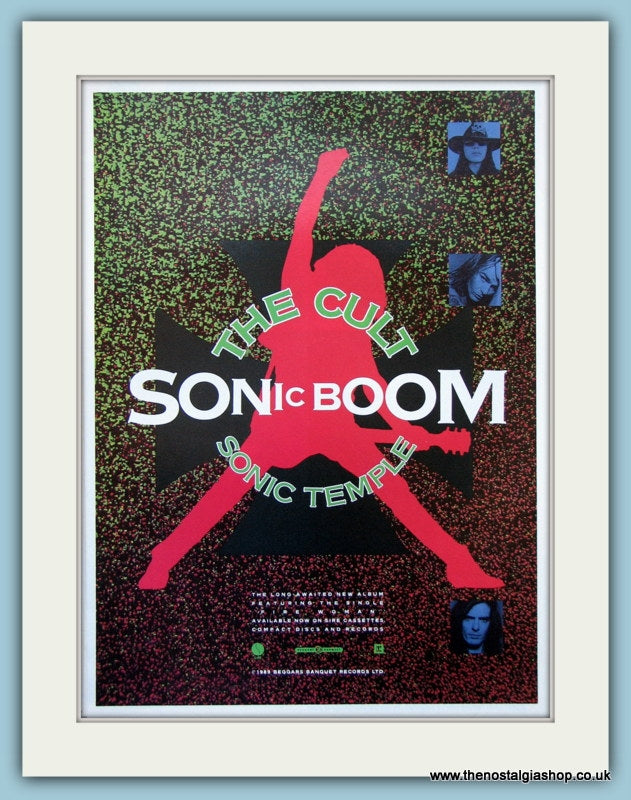The Cult. Sonic Temple, Sonic Boom! Classic original advert 1989. Presented in cream bevel cut mount with backing card and clear bag. Ready to fit in 14 x 11 inch frame. Want it framing? If so, buy this then go to Frames Available Category. Click to buy on the suitable frame and we will do the rest. All our adverts, unless clearly stated are Originals from the date shown They make excellent pieces of wall art and stunning gifts. Many are rare and hard to find and once sold, may not be replaced. Remember you are buying a piece of history. Website watermark is not on original.