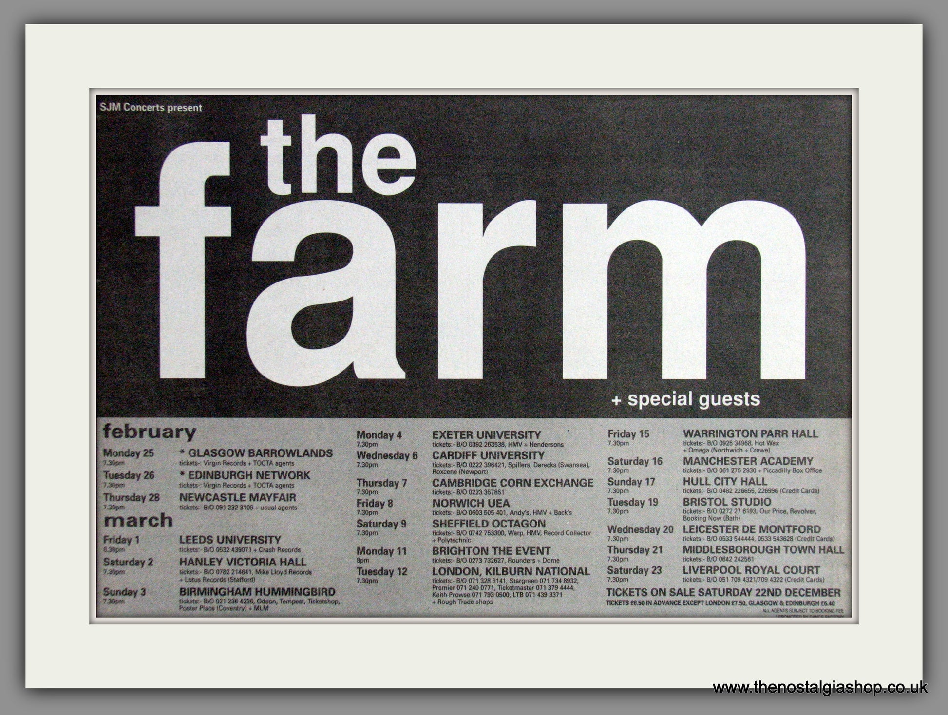 The Farm, Tour Dates With Special Guests. 1990 Original Advert (ref AD53140)