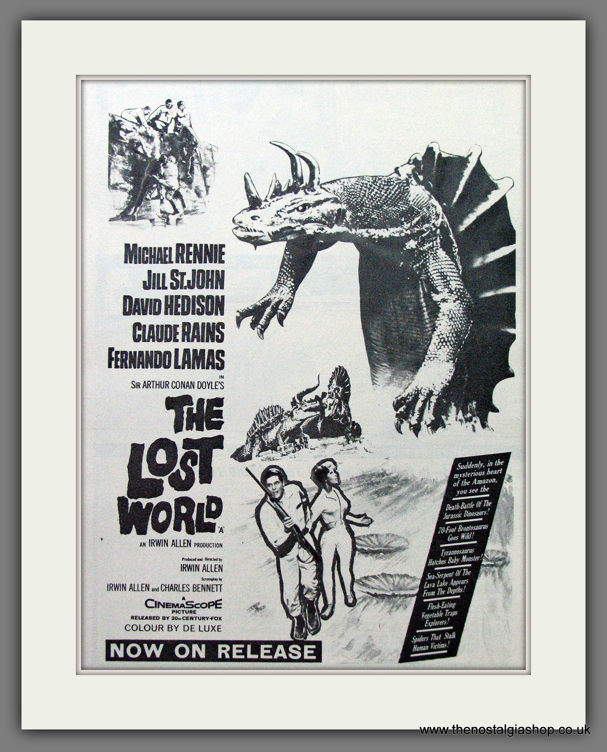 The Lost World. Michael Rennie, Jill St. John. Vintage Advert. Classic Original advert 1960. Presented and Supplied in a cream bevel cut mount with backing card and display bag. Ready to fit in 14 x 11 inch frame. Want it framing? If so, buy this then go to Frames Available Category. Click to buy on the suitable frame and we will do the rest. All our adverts, unless clearly stated are Originals from the date shown. They make excellent pieces of wall art and stunning gifts. Many are rare and hard to find and once sold, may not be replaced. Remember you are buying a piece of history. Website watermark is not on original.