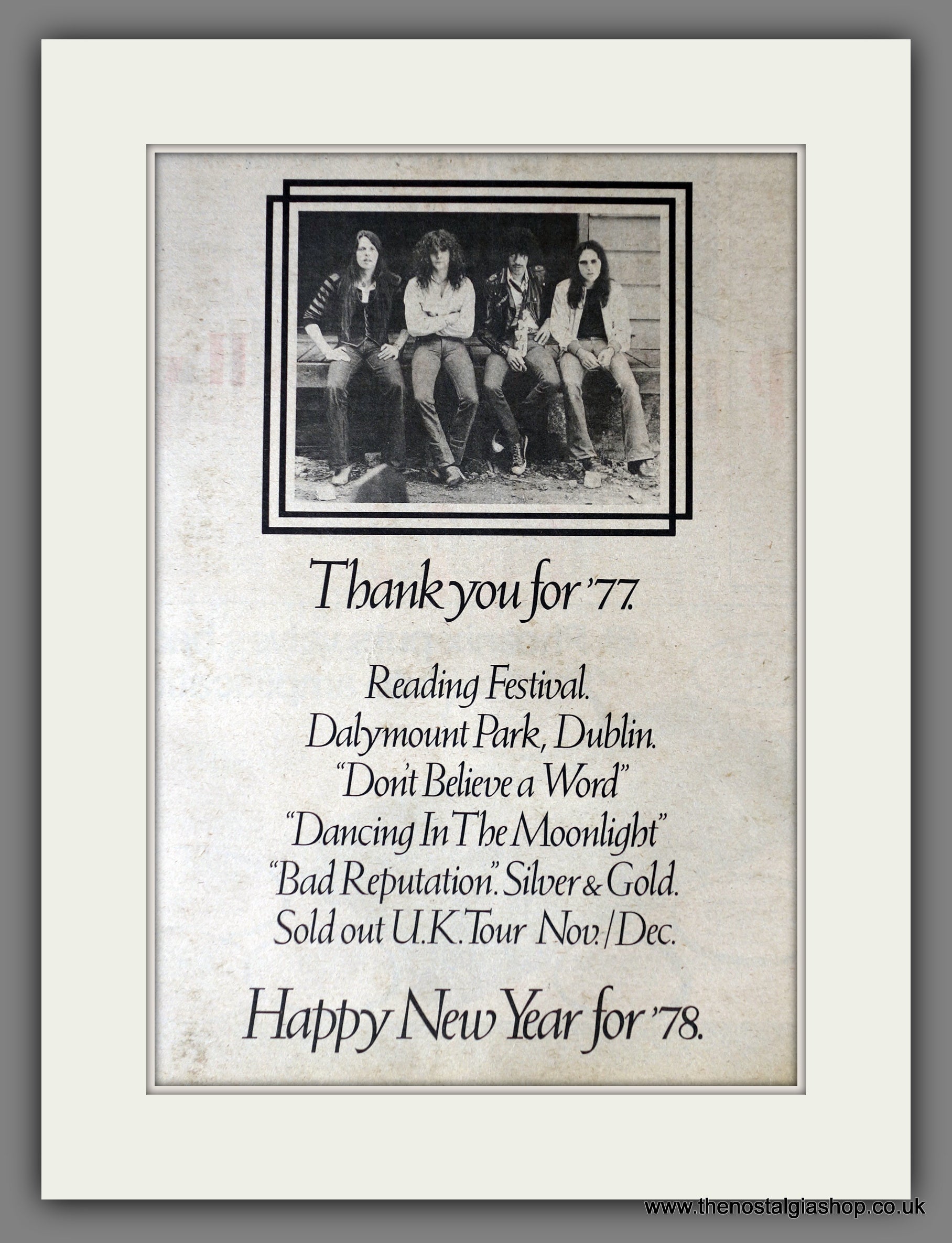 Thin Lizzy. Thanks, Happy New Year 78. Original Advert 1977 (ref AD14177)