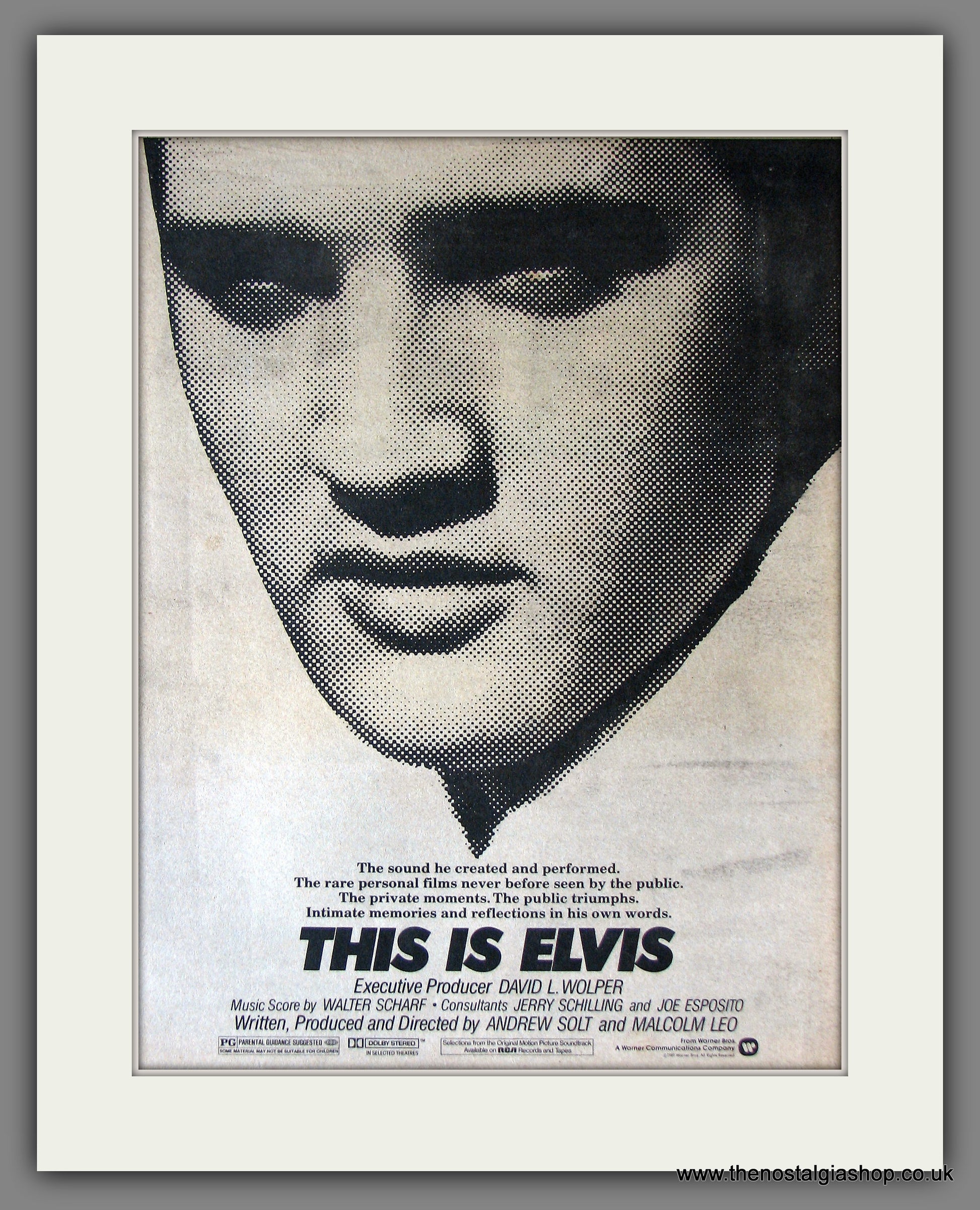 This Is Elvis. Vintage Advert. This is a large classic Original advert 1981. Presented and Supplied in a cream bevel cut mount with backing card and clear bag. Ready to fit in 20 x 16 inch frame. The mounted advert will be posted via courier and well packed - protected with a sheet of hardboard to keep it rigid. Any questions or inquiries, please get in touch, we are here to help! All our adverts, unless clearly stated are Originals from the date shown. They make excellent pieces of wall art and stunning gifts. Many are rare and hard to find and once sold, may not be replaced. Remember you are buying a piece of history. Website watermark is not on original .
