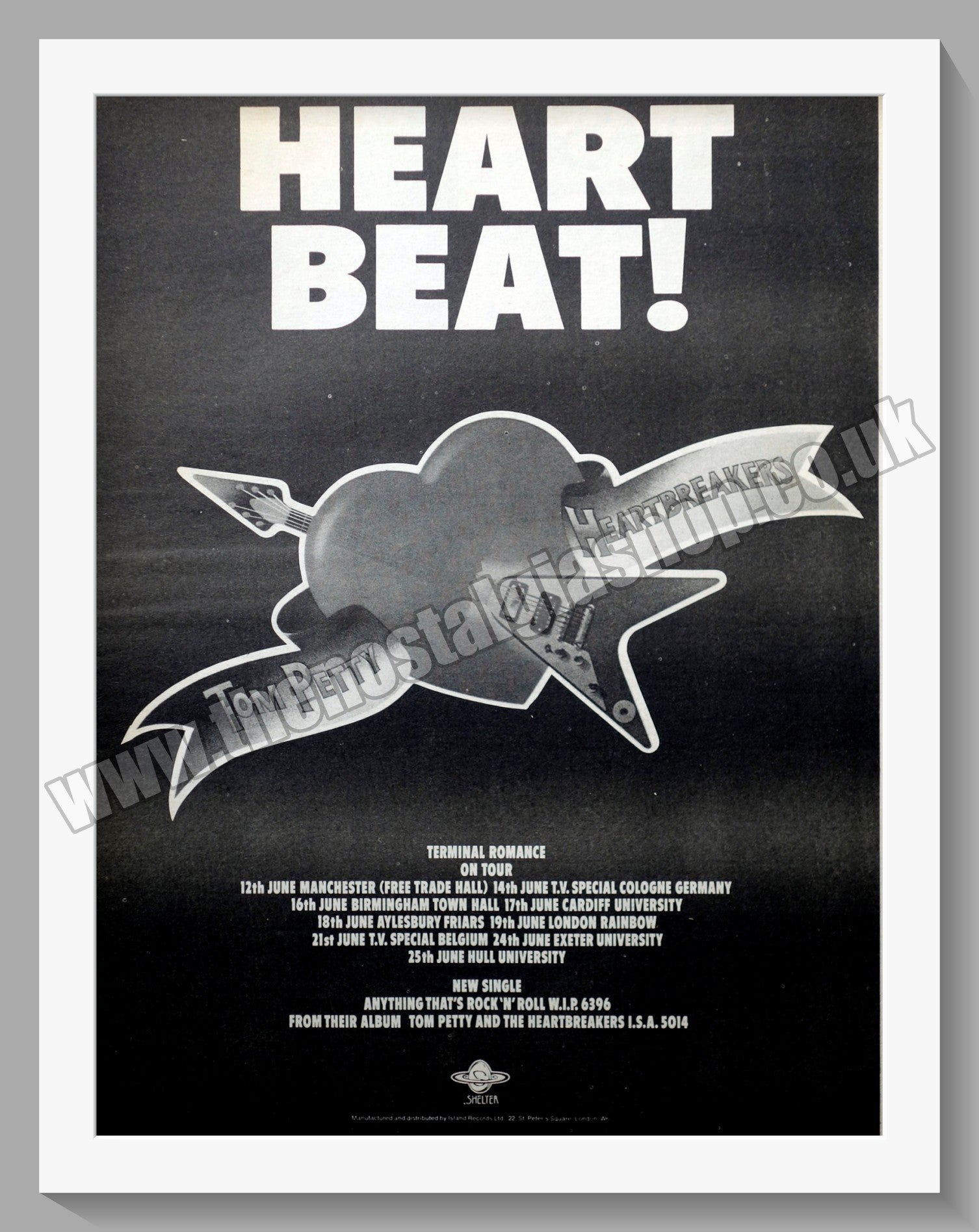 Tom Petty And The Heart Breakers. Terminal Romance Tour. This is a large classic Original Vintage Advert 1977. Presented and Supplied in a cream, bevel cut mount with backing card and clear bag. Ready to fit in 20 x 16 inch frame. The mounted advert will be posted via courier and well packed - protected with a sheet of hardboard to keep it rigid. Any questions or inquiries, please get in touch, we are here to help! All our adverts, unless clearly stated are Originals from the date shown. They make excellent pieces of wall art and stunning gifts. Many are rare and hard to find and once sold, may not be replaced. Remember you are buying a piece of history. Website watermark is not on original.