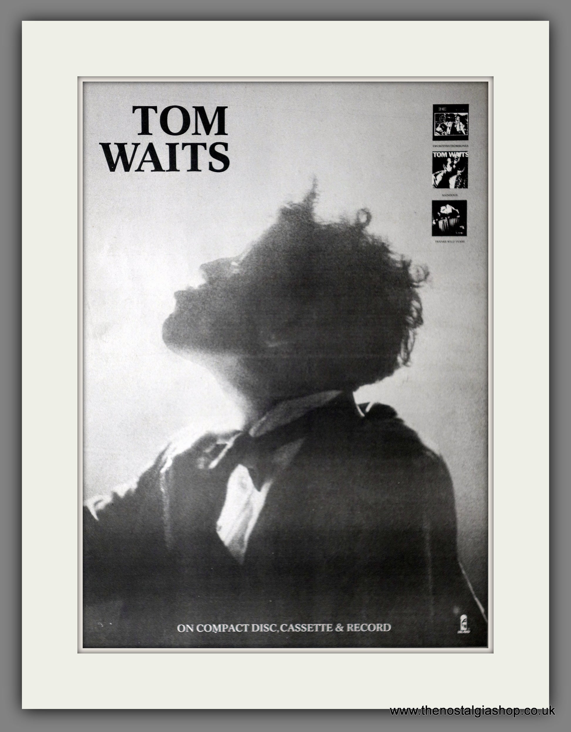 Tom Waits Albums. Vintage Advert. This is a large classic Original advert 1987. Presented in cream bevel cut mount with backing card and clear bag. Ready to fit in 20 x 16 inch frame. The mounted advert will be posted via courier and well packed - protected with a sheet of hardboard to keep it rigid. Any questions or inquiries, please get in touch, we are here to help! All our adverts, unless clearly stated are Originals from the date shown. They make excellent pieces of wall art and stunning gifts. Many are rare and hard to find and once sold, may not be replaced. Remember you are buying a piece of history. Website watermark is not on original.