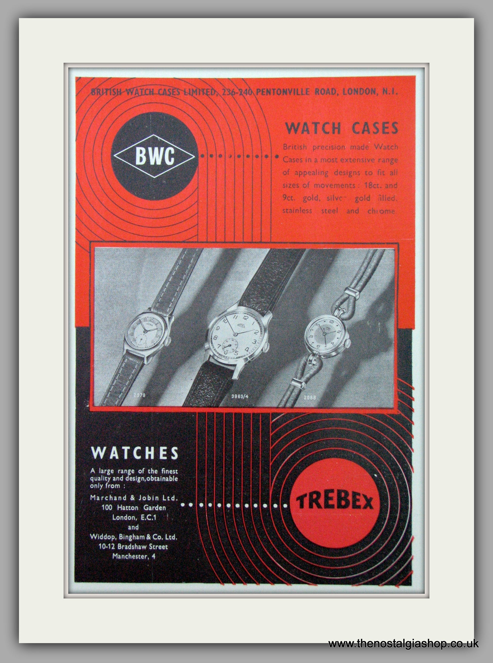 Trebex Watches. Watch case. Vintage Advert. Original Advert 1953. Presented in cream bevel cut mount with backing card and clear bag. Ready to fit in 14 x 11 inch frame. Want it framing? If so, buy this then go to Frames Available Category. Click to buy on the suitable frame(s) and we will do the rest. All our adverts, unless clearly stated are Originals from the date shown. They make excellent pieces of wall art and stunning gifts. Many are rare and hard to find and once sold, may not be replaced. Remember you are buying a piece of history. Website watermark is not on original.