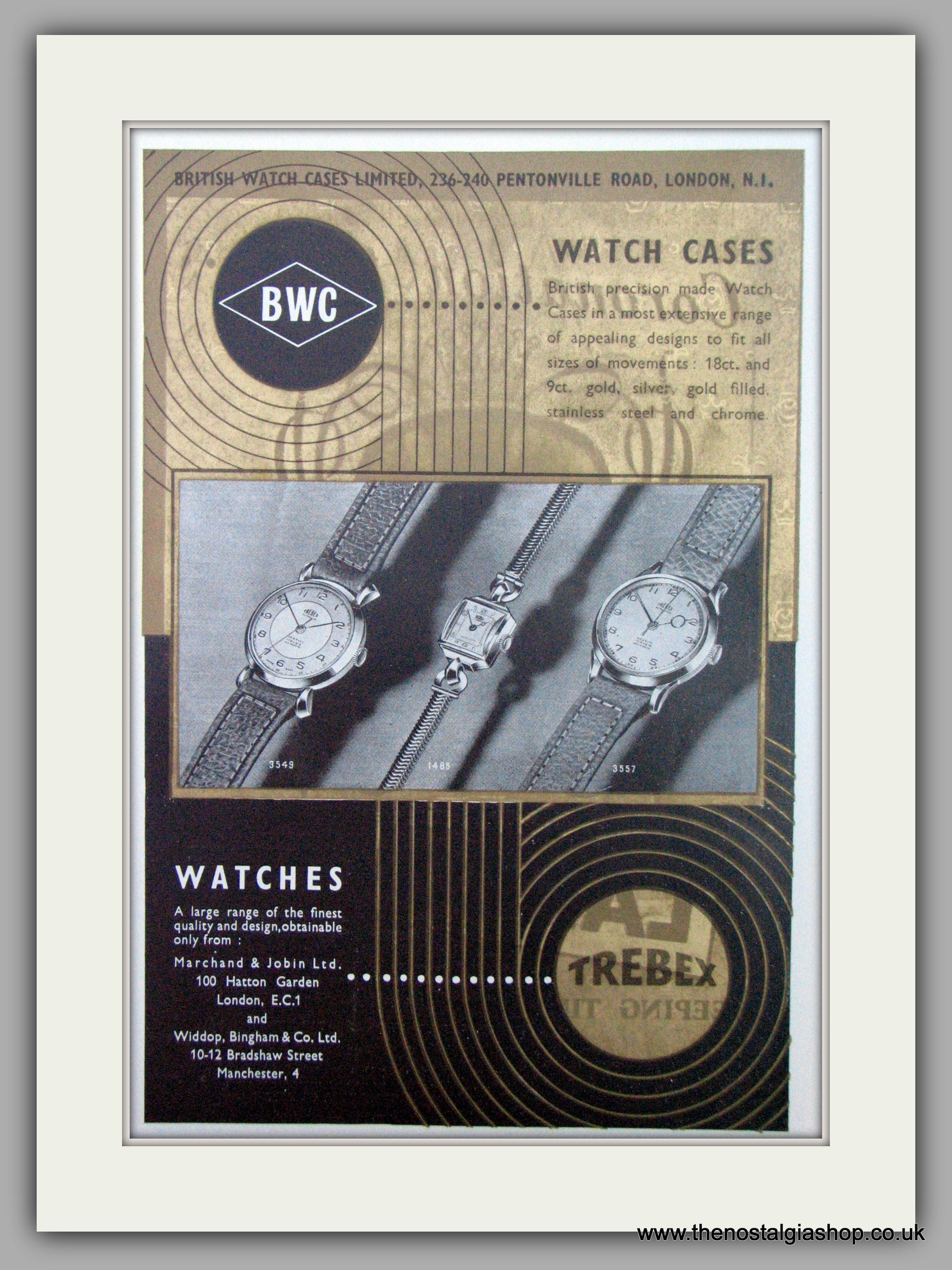 Trebex Watches. Watch cases. Vintage Advert. Original Advert 1953. Presented in cream bevel cut mount with backing card and clear bag. Ready to fit in 14 x 11 inch frame. Want it framing? If so, buy this then go to Frames Available Category. Click to buy on the suitable frame(s) and we will do the rest. All our adverts, unless clearly stated are Originals from the date shown. They make excellent pieces of wall art and stunning gifts. Many are rare and hard to find and once sold, may not be replaced. Remember you are buying a piece of history. Website watermark is not on original.
