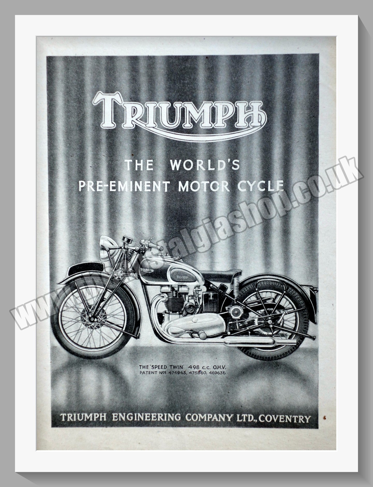 Triumph 498cc Motorcycles. Original advert 1945 (ref AD57988)