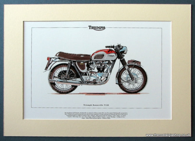 Triumph Bonneville T120. Mounted Motorcycle Print. (ref PR3017)