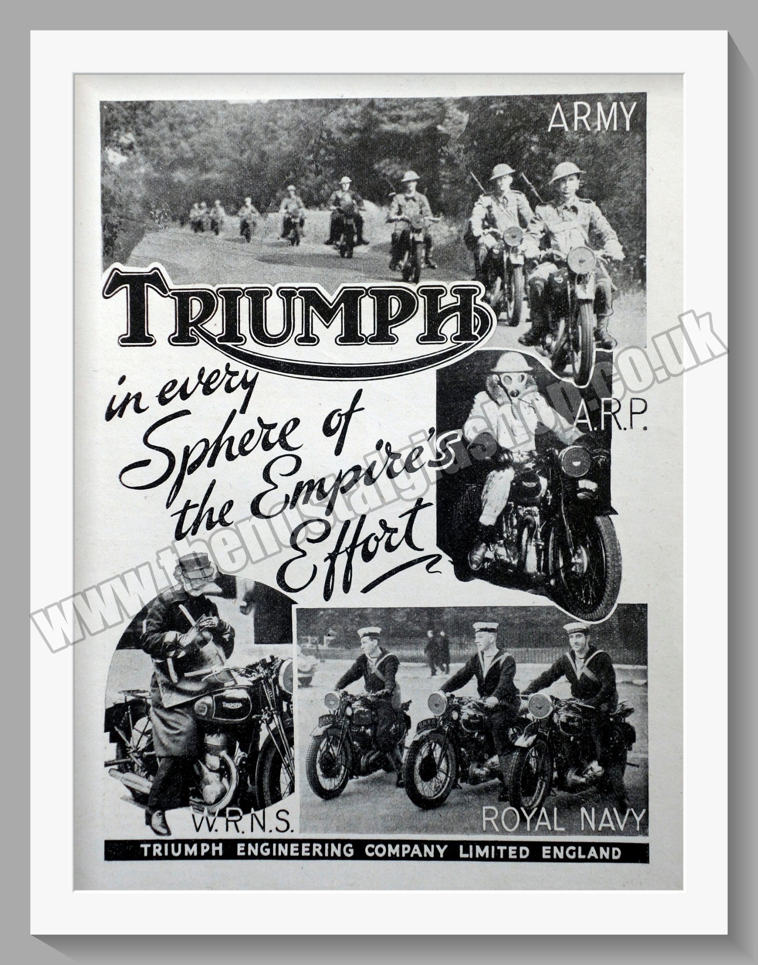 Triumph Motorcycles Serving The Forces. Original advert 1940 (ref AD57914)
