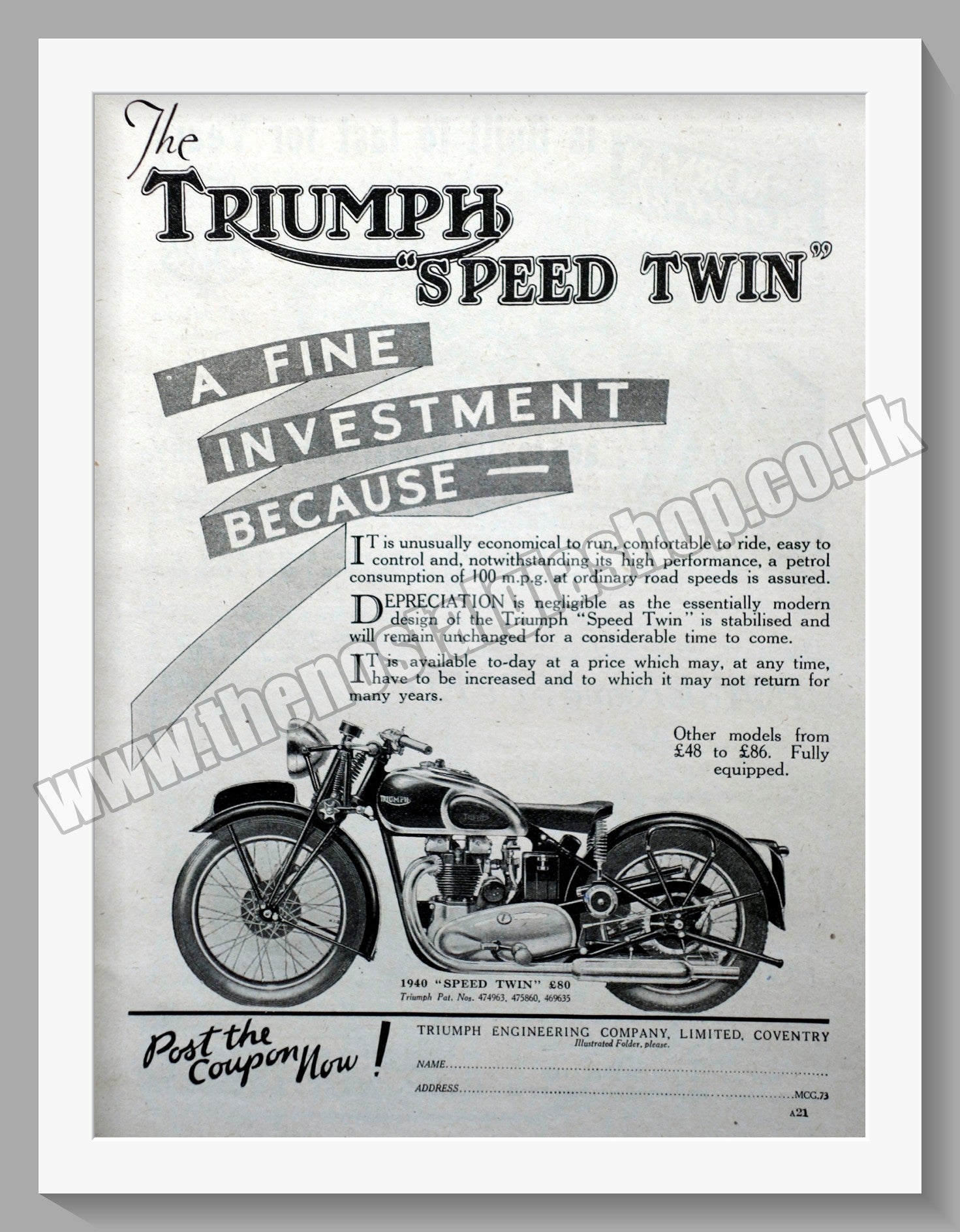 Triumph Speed Twin Motorcycles. Original advert 1940 (ref AD57912)