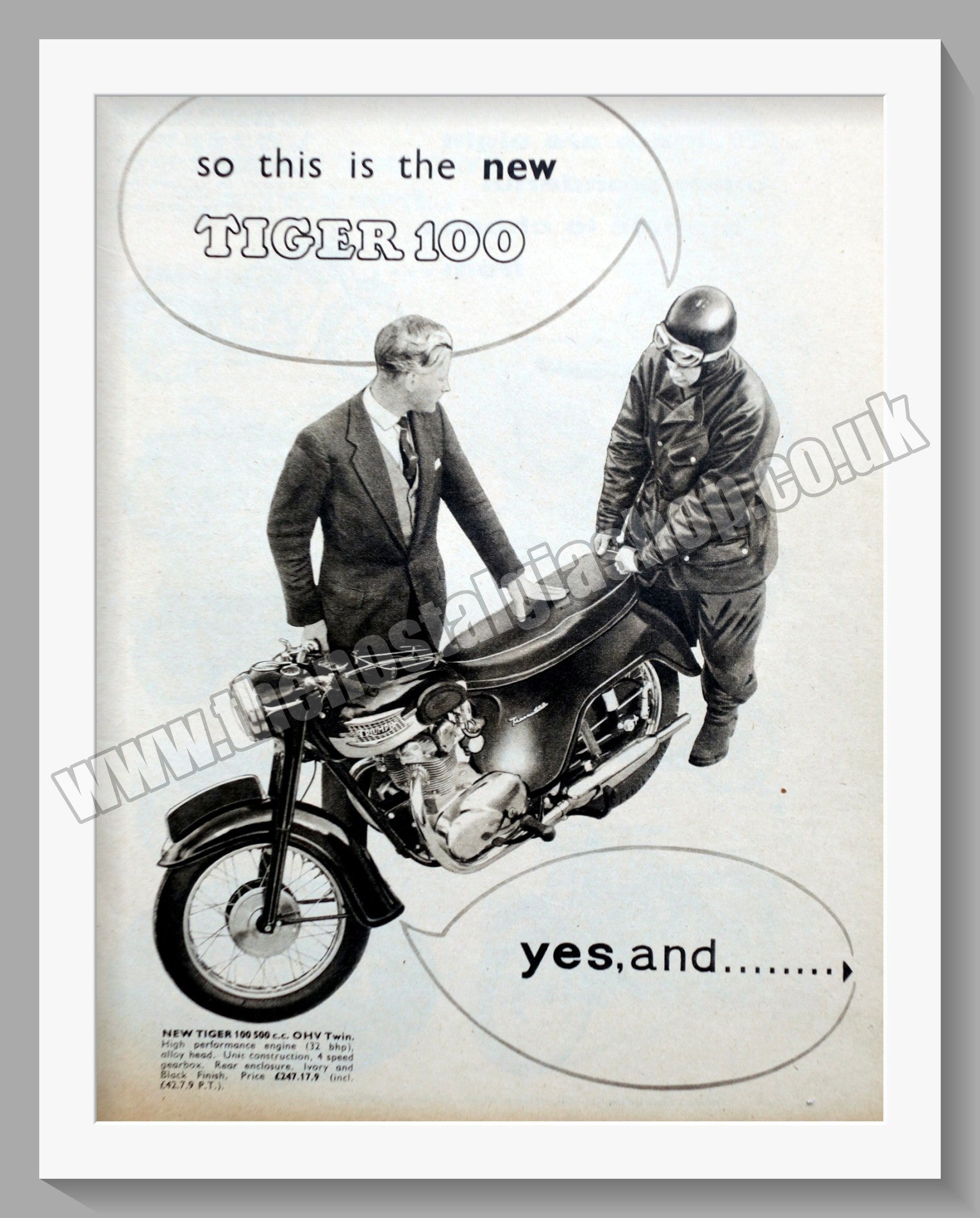 Triumph Tiger 100 Motorcycles. Original advert 1959 (ref AD58116)