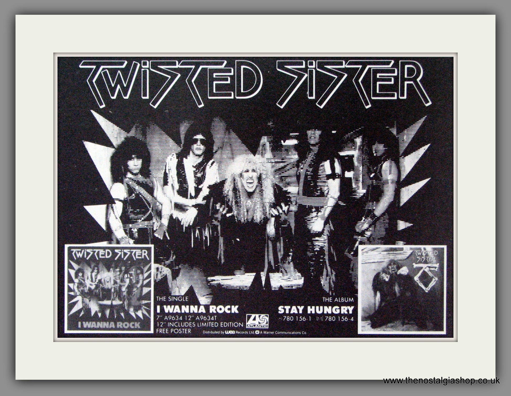 Twisted Sister, I Wanna Rock. Classic original advert 1984. Presented and Supplied in cream bevel cut mount with backing card and clear bag. Ready to fit in 12 x 10 inch frame. Want it framing? If so, buy this then go to Frames Available Category. Click to buy on the suitable frame and we will do the rest. All our adverts, unless clearly stated are Originals from the date shown. They make excellent pieces of wall art and stunning gifts. Many are rare and hard to find and once sold, may not be replaced. Remember you are buying a piece of history. Website watermark is not on original.