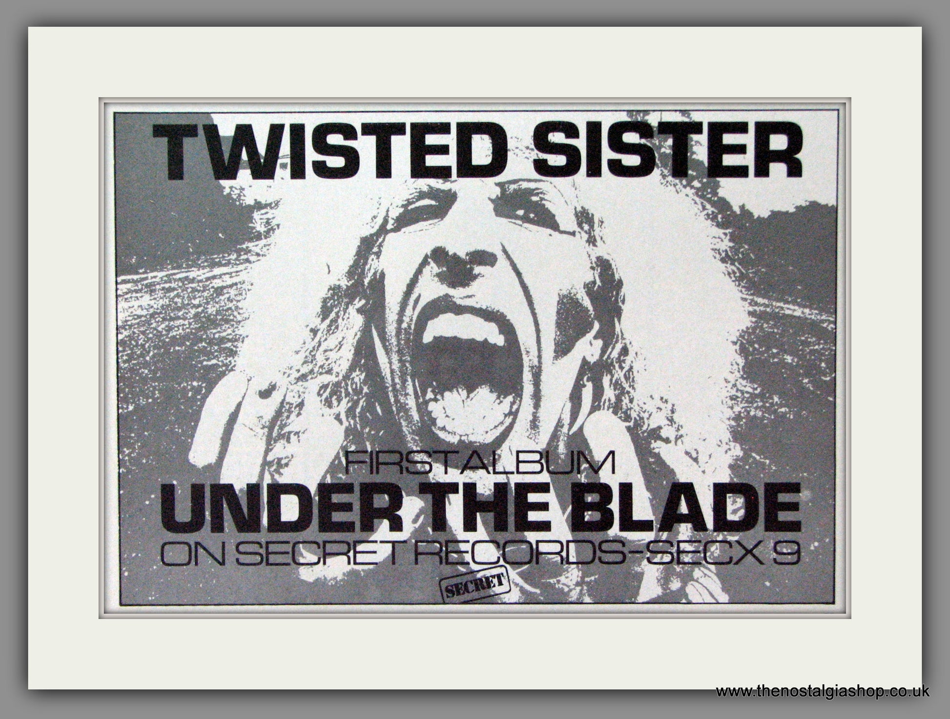 Twisted Sister, Under The Blade. Classic original advert 1982. Presented and Supplied in cream bevel cut mount with backing card and clear bag. Ready to fit in 12 x 10 inch frame. Want it framing? If so, buy this then go to Frames Available Category. Click to buy on the suitable frame and we will do the rest. All our adverts, unless clearly stated are Originals from the date shown. They make excellent pieces of wall art and stunning gifts. Many are rare and hard to find and once sold, may not be replaced. Remember you are buying a piece of history. Website watermark is not on original.