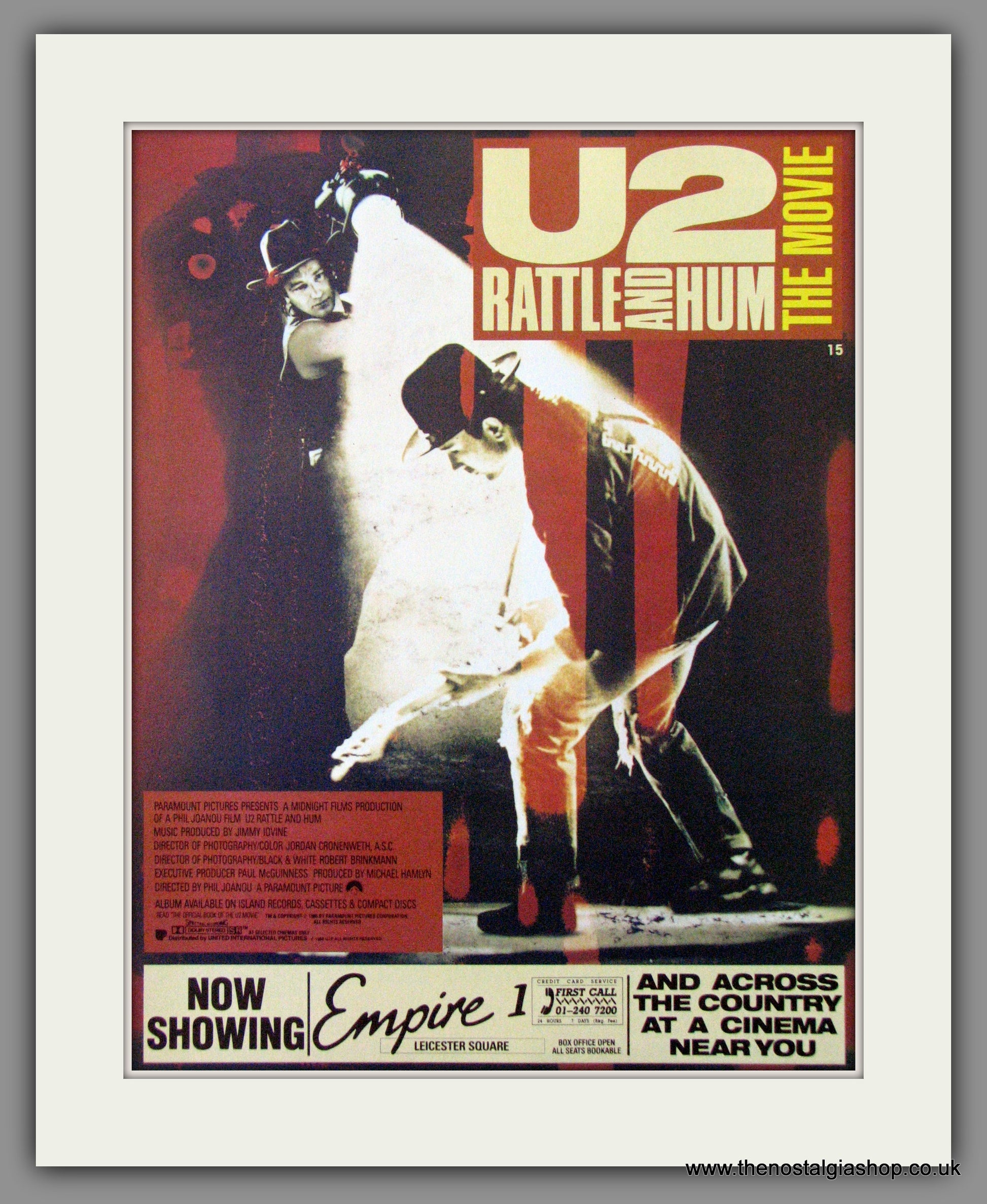 U2 Rattle And Hum. Classic original advert 1988. Presented and Supplied in cream bevel cut mount with backing card and clear bag. Ready to fit in 14 x 11 inch frame. Want it framing? If so, buy this then go to Frames Available Category. Click to buy on the suitable frame and we will do the rest. All our adverts, unless clearly stated are Originals from the date shown. They make excellent pieces of wall art and stunning gifts. Many are rare and hard to find and once sold, may not be replaced. Remember you are buying a piece of history. Website watermark is not on original.