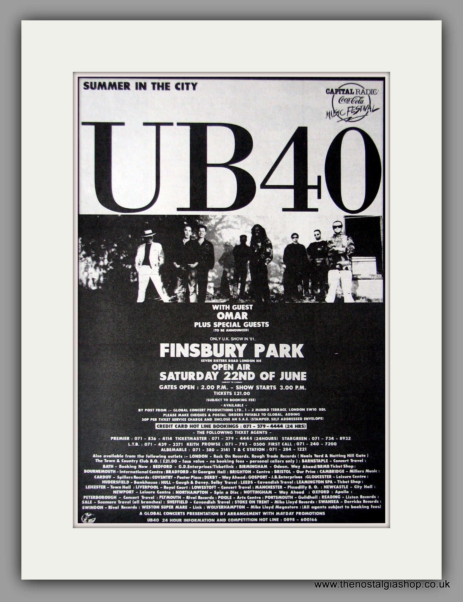 UB40. Finsbury Park. 1991 Original Advert (ref AD50887)
