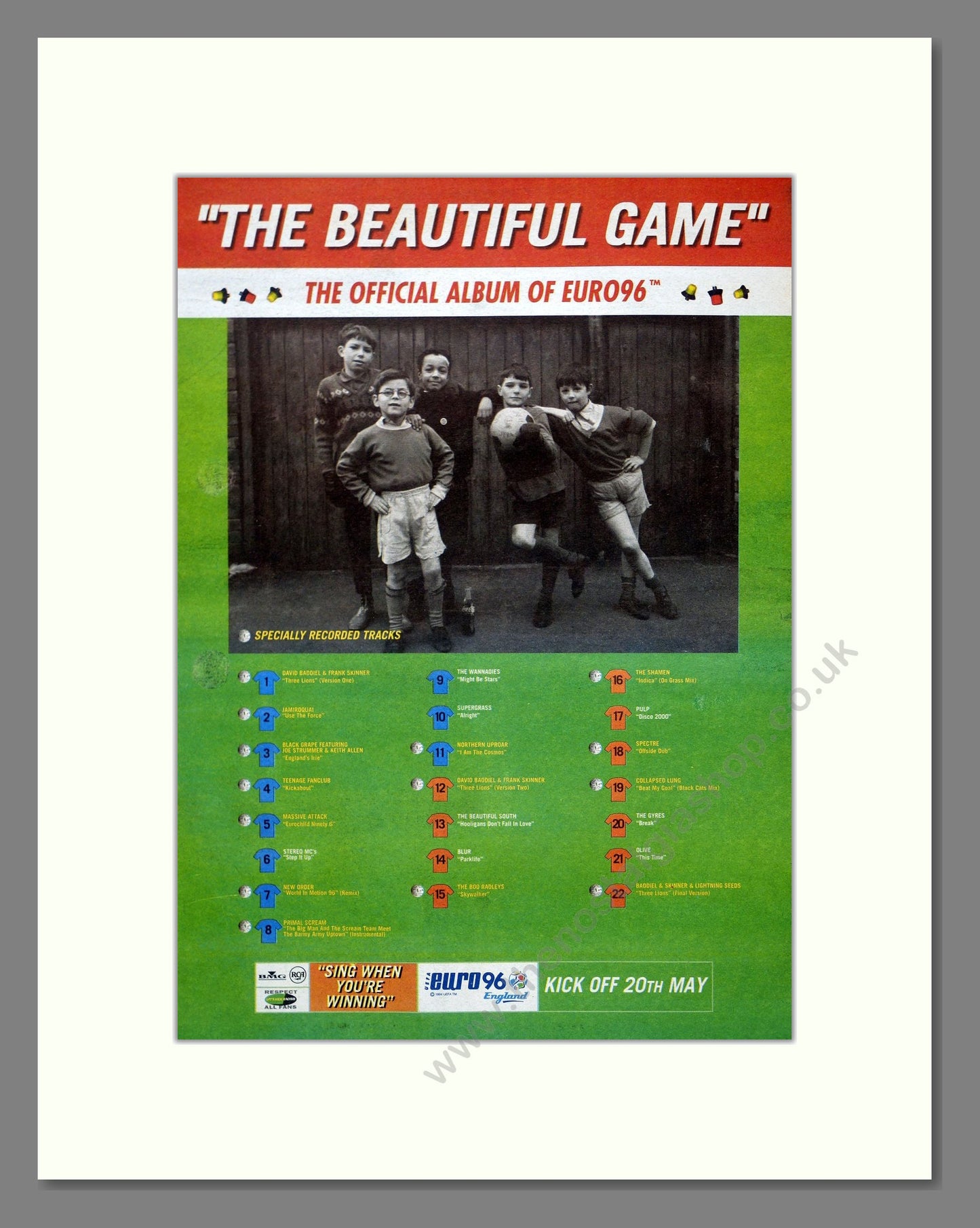Various Artists - Euro 96 Official Album. Vintage Advert. This is a large classic original advert from 1996. Presented and supplied in a cream bevel cut mount with backing card and clear bag. Ready to fit in a 20 x 16 inches frame. The mounted advert will be posted via courier and well packed - protected with a sheet of hardboard to keep it rigid. Any questions or enquiries, please get in touch, we are here to help! All our adverts, unless clearly stated are originals from the date shown. They make excellent pieces of wall art and stunning gifts. Many are rare and hard to find and once sold, may not be replaced. Remember you are buying a piece of history. Website watermark is not on original.