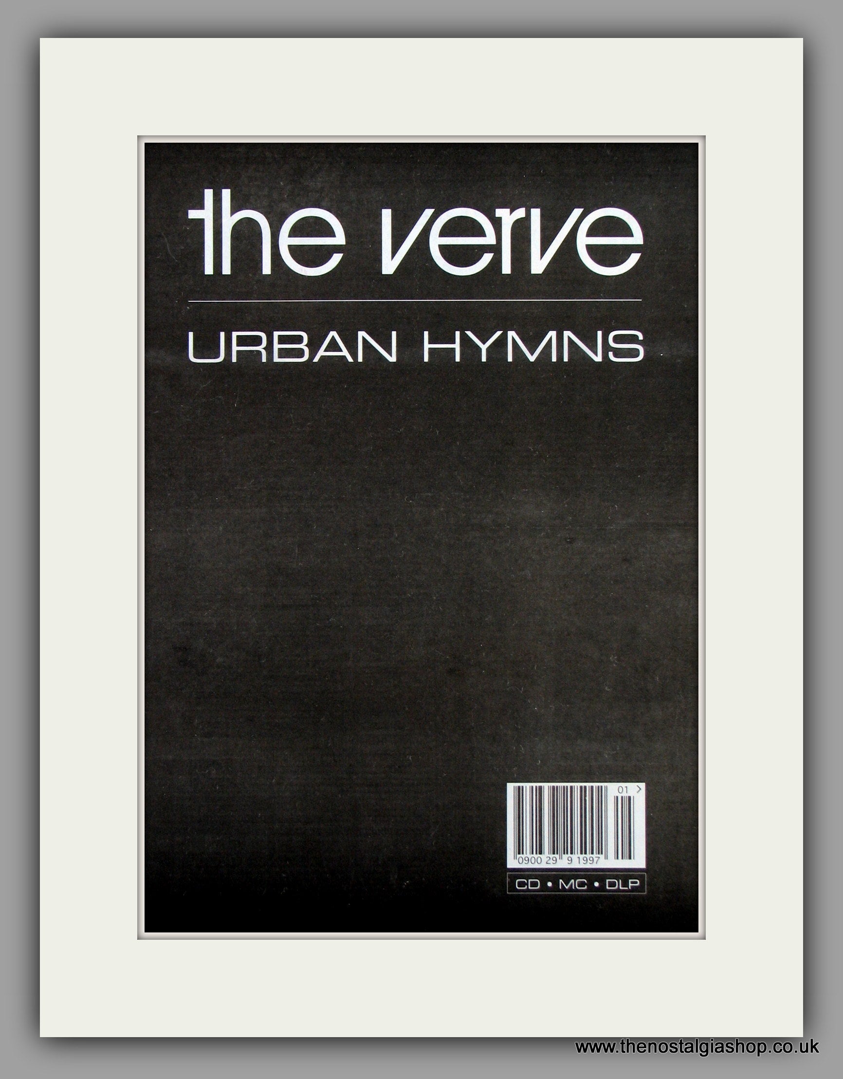 Verve (The) Urban Hymns. Original Vintage Advert 1997 (ref AD10229). Presented and supplied in a cream bevel cut mount with backing card and clear bag. Ready to fit in a 20x16 inch frame. The mounted advert will be posted via courier and well packed - protected with a sheet of hardboard to keep it rigid. Any questions or enquiries, please get in touch, we are here to help! All our adverts, unless clearly stated are originals from the date shown. They make excellent pieces of wall art and stunning gifts. Many are rare and hard to find and once sold, may not be replaced. Remember you are buying a piece of history. Website watermark is not on original.