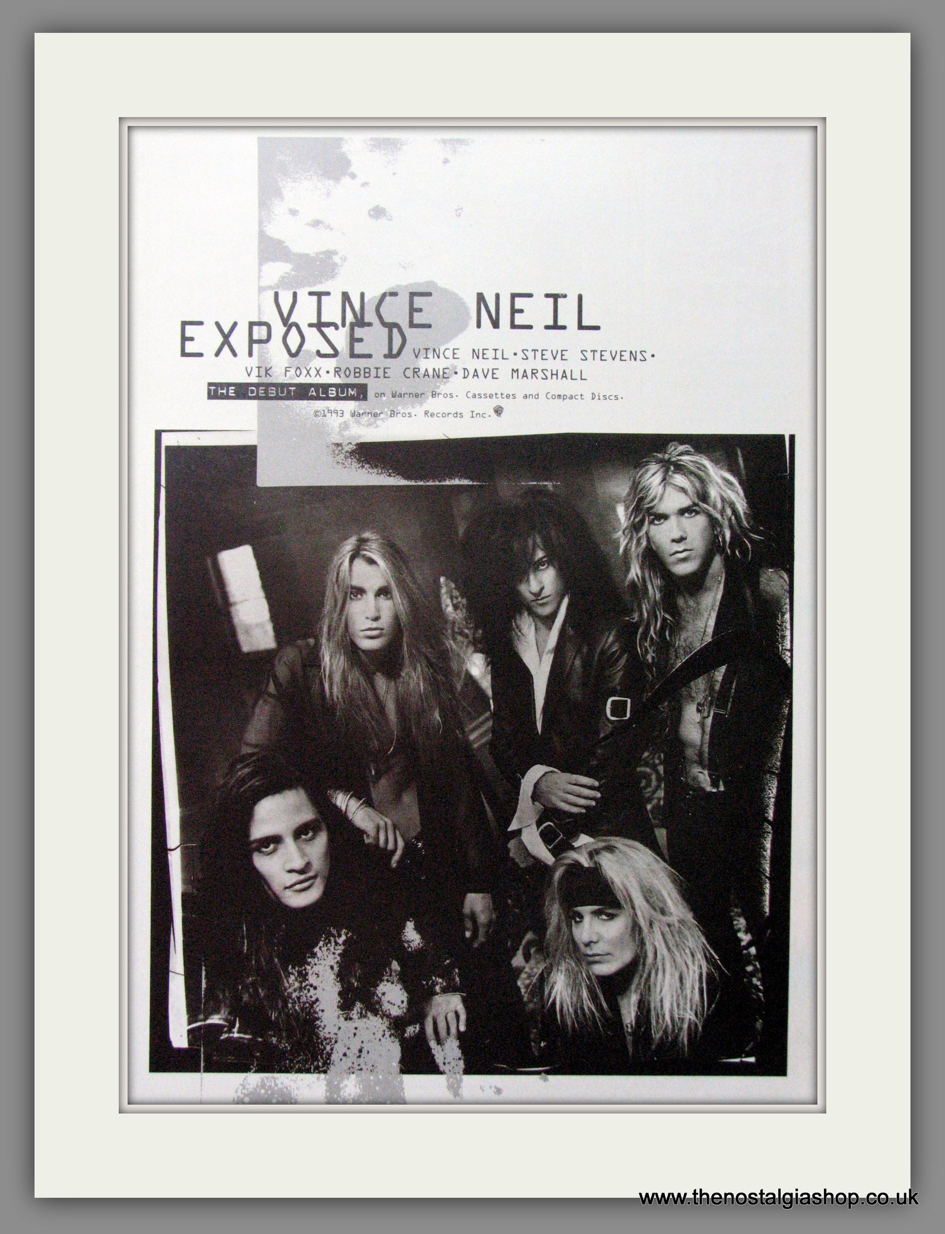 Vince Neil. Debut Solo Album, Exposed. Motley Crue. Classic Original advert 1993. Presented and Supplied in cream bevel cut mount with backing card and clear bag. Ready to fit in 14 x 11 inch frame. Want it framing? If so, buy this then go to Frames Available Category. Click to buy on the suitable frame and we will do the rest. All our adverts, unless clearly stated are Originals from the date shown. They make excellent pieces of wall art and stunning gifts. Many are rare and hard to find and once sold, may not be replaced. Remember you are buying a piece of history. Website watermark is not on original.