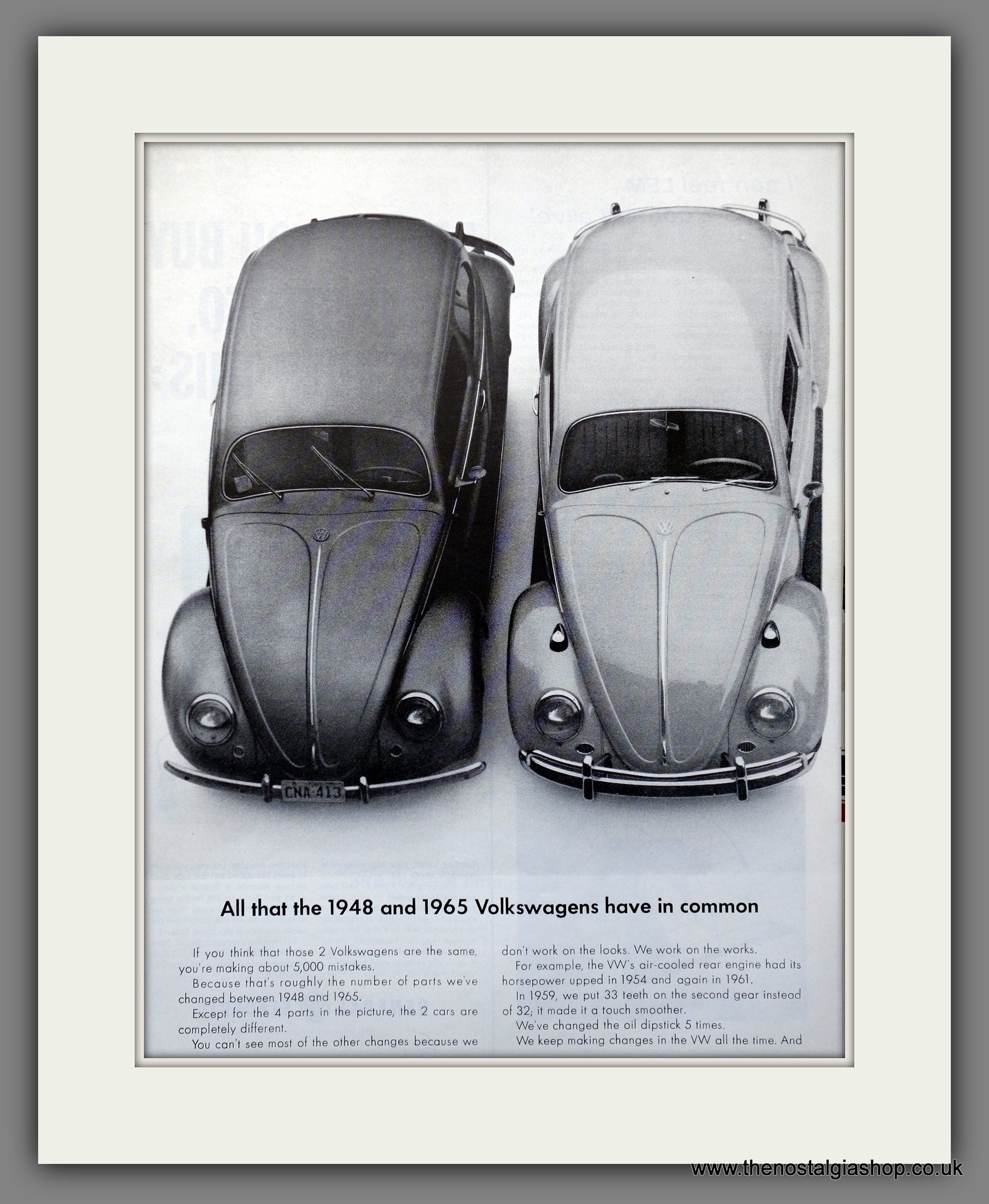 VW Beetle. Original advert 1964. Presented and Supplied in 2 cream bevel cut mounts with backing card and clear bag. Ready to fit in two 18 x 14 inch frames. All our adverts, unless clearly stated are Originals from the date shown. They make excellent pieces of wall art and stunning gifts. Many are rare and hard to find and once sold, may not be replaced. Remember you are buying a piece of history. Website watermark is not on original.