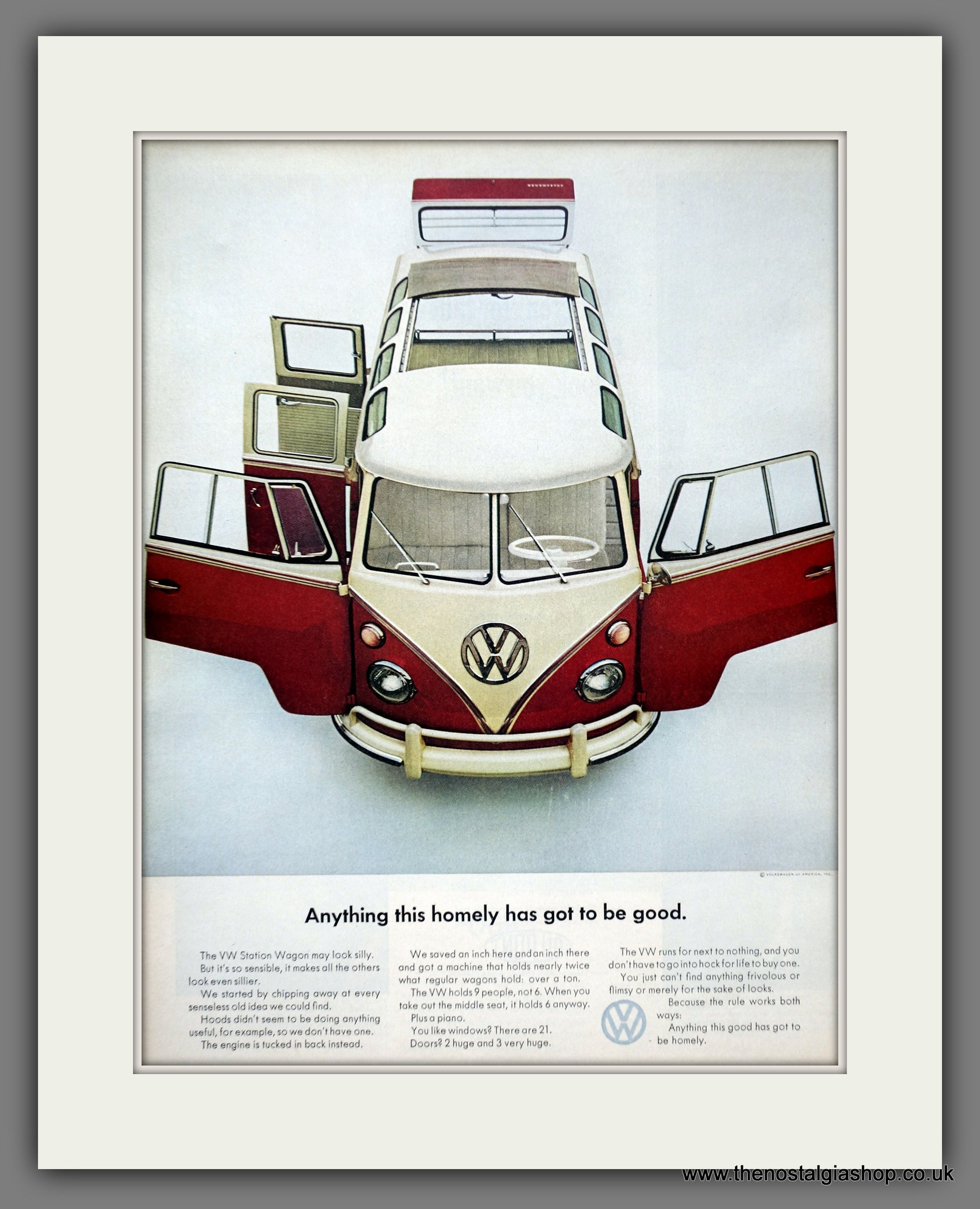 VW Station Wagon. VW Campervan Original advert 1964. Presented and Supplied in a cream bevel cut mount with backing card and clear bag. Ready to fit in 18 x 14 inch frame. All our adverts, unless clearly stated are Originals from the date shown. They make excellent pieces of wall art and stunning gifts. Many are rare and hard to find and once sold, may not be replaced. Remember you are buying a piece of history. Website watermark is not on original. Motorised Caravans, Motorhomes, Motor Homes, Campervans, Camper Van, Caravan. VW Campervan. VW Camper Van.