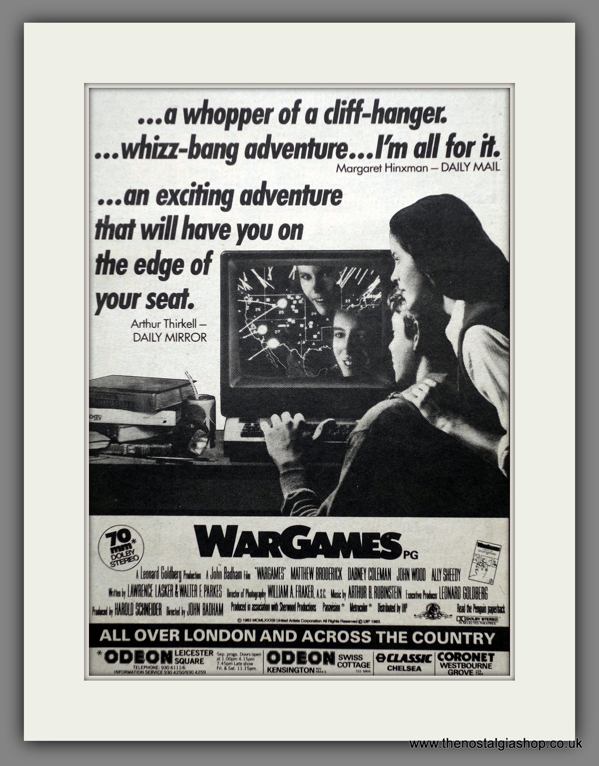 Wargames. Original advert 1983. Presented and Supplied in a cream bevel cut mount with backing card and Clear bag. Ready to fit in a 14 x 11 inch frame. All our adverts, unless clearly stated are Originals from the date shown. They make excellent pieces of wall art and stunning gifts. Many are rare and hard to find and once sold, may not be replaced. Remember you are buying a piece of history.